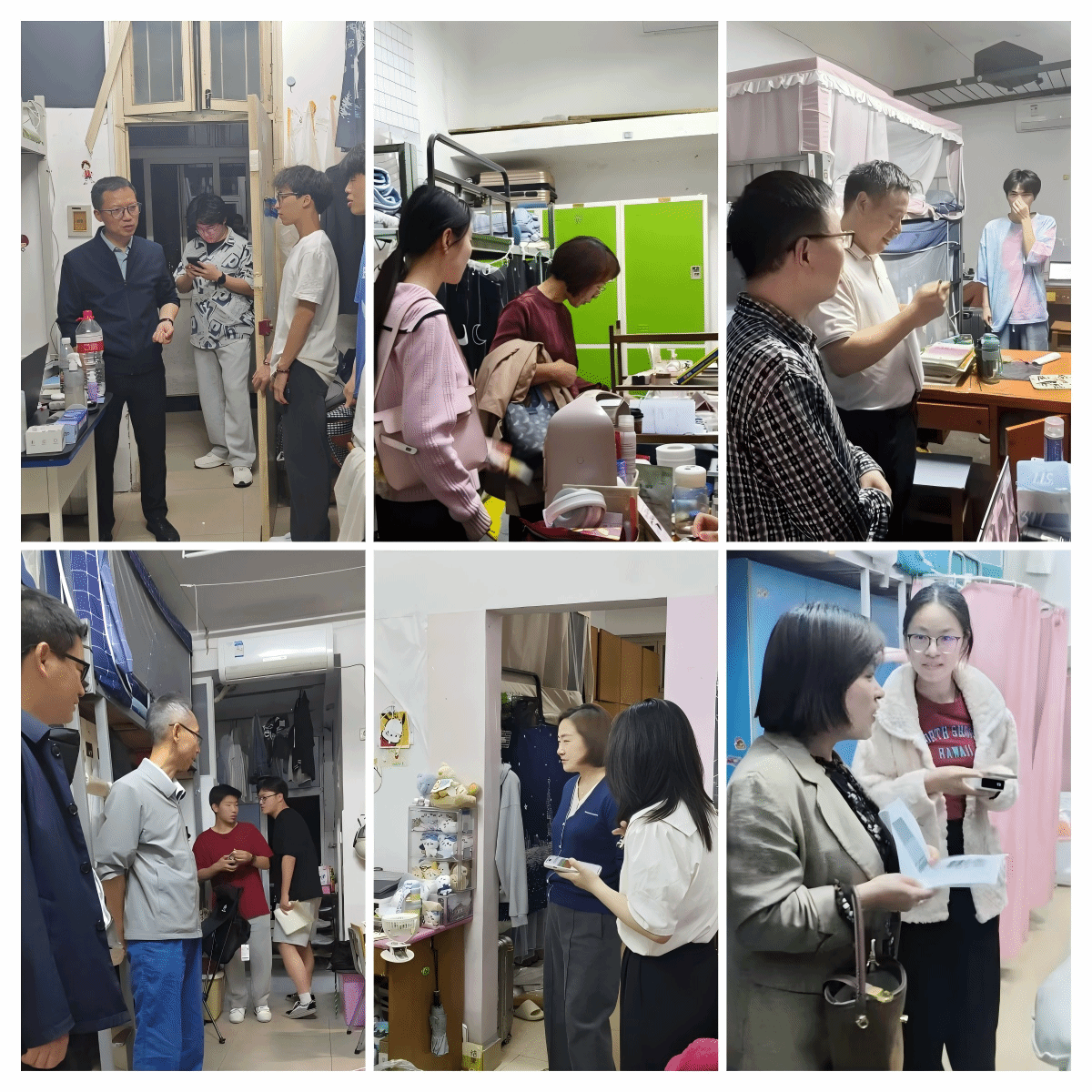 走访过程中,学院领导、班主任、辅导员与学生亲切交谈,详细询问了大家的学习、生活情况。同时,学院领导对宿舍的卫生状况以及用电安全等方面进行了细致的检查,并提醒学生要加强安全意识。此外,老师们关心了学生的假期安排,提醒学生五一假期是出游高峰,在外面游玩时一定要注意安全,要增强出行安全、交通安全和防火防盗防诈意识。