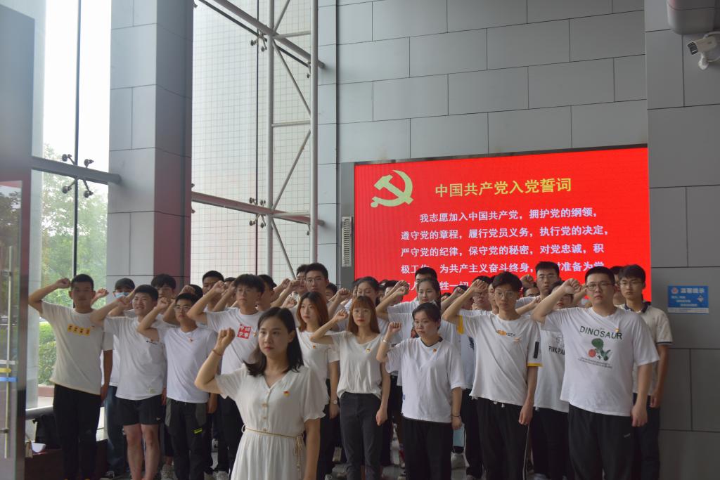 最后,由学生党支部书记叶婵老师在天工楼一楼大厅组织举行新党员入党宣誓仪式和老党员重温入党誓词活动。