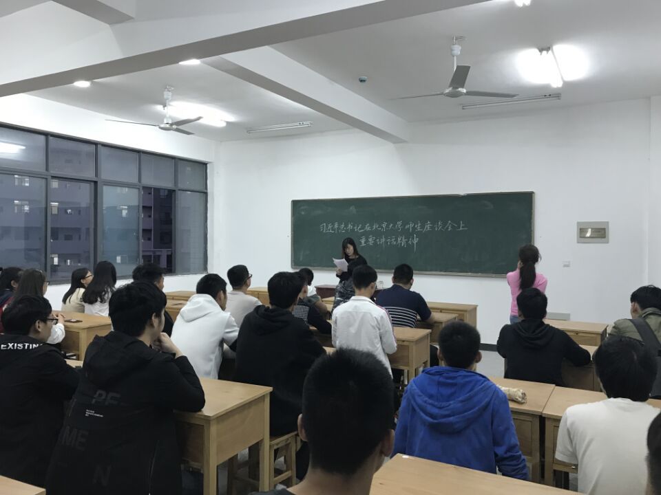 为深入学习贯彻落实习近平总书记的重要讲话精神,传承五四精神,TYC234CC太阳成集团各班级利用5月6日周日点评召开了“学习习近平总书记在北京大学座谈会上的讲话”主题班会。