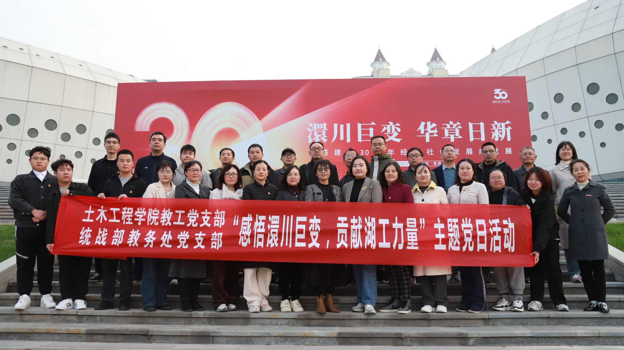为深入学习贯彻习近平新时代中国特色社会主义思想,加深师生对孝感城建规划和城市发展的了解,增强师生的历史责任感和民族自信心,从历史底蕴中汲取奋进力量。在孝感建市30周年、学校建校80周年之际,土木工工程学院党委联合统战部教务处党支部开展了“感悟澴川巨变,贡献湖工力量”主题党日活动。