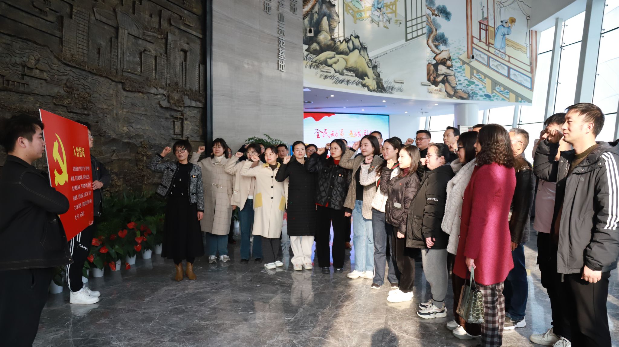 参观完成就展后,院长路亚妮带领大家在厚重的巨幅孝感文化浮雕墙面前,重温入党誓词。