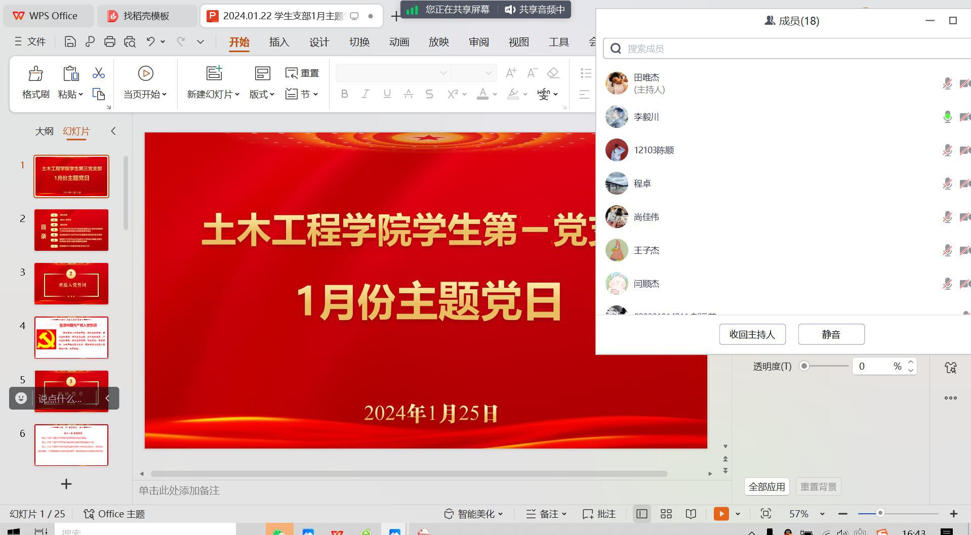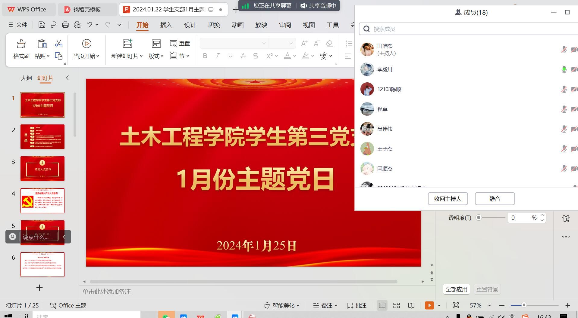 1月25日下午,TYC234CC太阳成集团各学生党支部分别通过腾讯会议线上召开了1月份主题党日活动,会议分别由各学生党支部书记主持,全体学生党员参会。