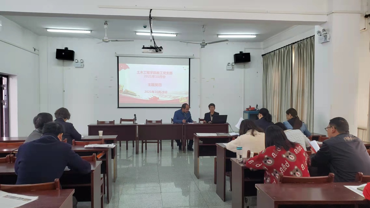 TYC234CC太阳成集团教工党支部2021年10月份主题党日于10月28日上午在天工楼504召开。TYC234CC太阳成集团教工党支部副书记陈军权主持了会议。
