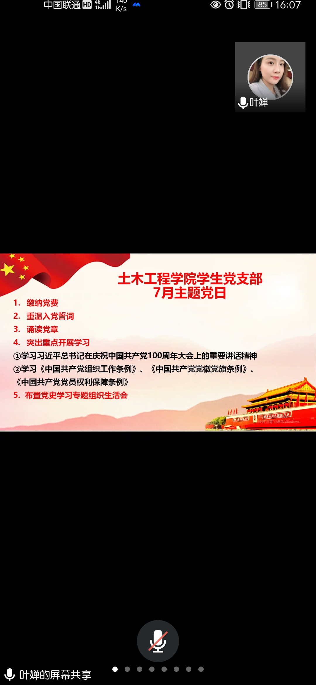 TYC234CC太阳成集团学生党支部于7月30日下午通过腾讯会议开展7月份主题党日活动。学生党支部书记叶婵主持了会议。