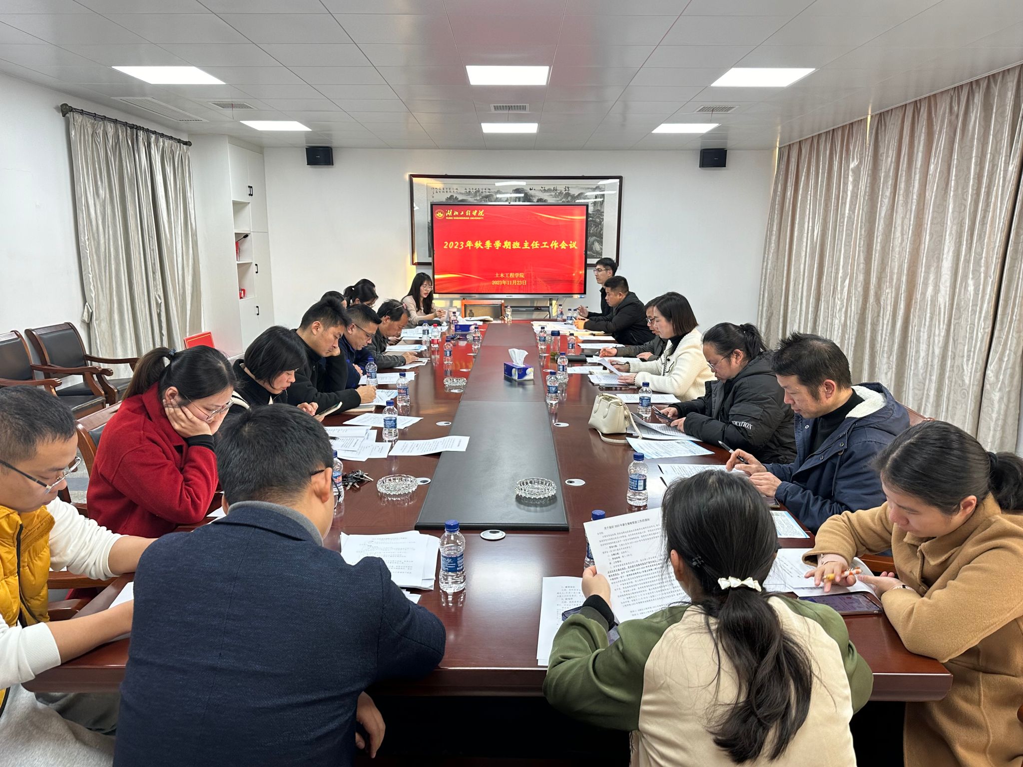 首先,各辅导员就近期自己负责的工作内容进行汇报,并对学校日常事务管理、安全教育、医保政策、评优评先文件等进行具体说明,帮助班主任进一步知悉学校各项政策文件。