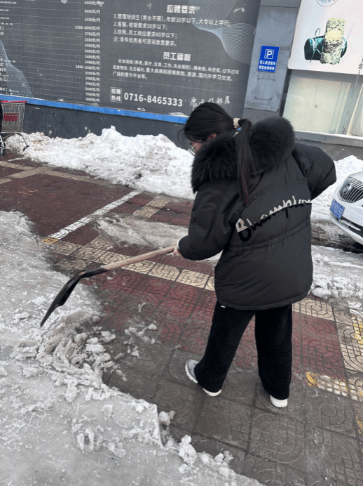 实践内容:2月5日,大雪初停,为方便市民安全畅通出行,荆州城区街道社区征集铲雪除冰志愿者,作为一名青年大学生,我第一时间报名参加,被安排到天桥旁的超市停车场铲雪,去的时候地上的雪已经被踩结实了,冰踩上去很滑,也很硬,不好铲,在另一个叔叔的帮助下我们才在人多起来之前把人行道上的冰都铲干净,任务完成的很快,但手还是疼了一整天,铲子很大很重,手臂也很酸,但在看见出门采买的人家,尤其是老人和小孩子都能走已经没有碎冰的路时还是觉得很值,心里也真心为自己能坚持下来感到骄傲。