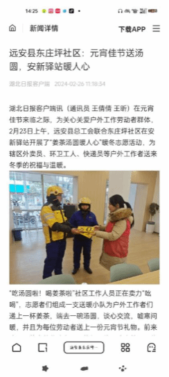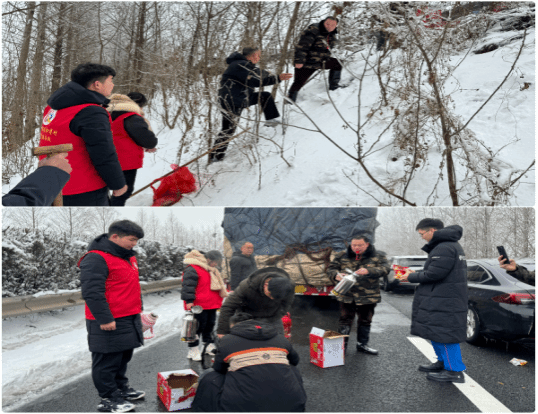 实践内容:2024年2月5日,冻雨暴雪极端恶劣天气席卷湖北大地,高速堵车,大雪封路,许多踏上返乡的车辆被困高速公路,湖北省荆州市公安县夹竹园镇新岗村自发组织党员干部与在乡大学生,给被困车辆送去热水与食品物资补给。得知消息后,我第一时间报名参加这支暖心突击队,和大伙一起冒雪穿过杂草丛林和陡坡,步行至两广高速新岗段,为滞留司机和乘客送去温暖与祝福。虽然天气严寒,手脚冰冷,但当听到一位长途卡车司机大叔落泪连道感谢的的那一刻,我内心的一股热流涌上心头,要知道湖北有难的时候都是八方支援,这都是我们应该做的。
