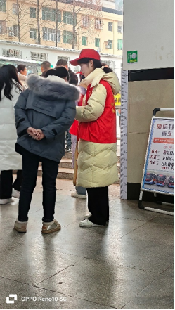实践内容:2024年2月6号,因春运返乡客流量增大,冻雨灾害影响,我志愿参加孝感北站暖冬行动,协助站内工作人员将孝感北站车站内客流量分流,为老弱病残孕等需要帮助的群体提供必要的帮助,同时负责铲除孝感北站周边主要交通道路的积雪等。期间高铁经常晚点,我们耐心地等候每一位旅客出站,帮助他们解决问题,指引方向,带领滞留的旅客到达休息处,我们还为工作人员送去热水,协助他们的工作,帮助出站的旅客能够顺利地通过。遇到特殊问题我们会第一时间向相关负责人报备,及时解决问题,使出行通畅。同时我们在休息期间,帮助站前工作人员铲除积雪,防止有旅客摔倒,我和志愿者们齐心协力将路上的积雪都铲出干净,铲除一条干净整洁的道路。虽然天气很冷,但是我们每个人心中都是温暖的,正如我们身着红色的志愿服,我们作为年轻的新鲜的血液为家乡作出贡献,我们希望为每一位乘客保驾护航,平安到家。