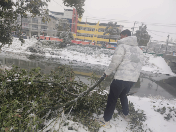 实践内容:接连几日的大范围冰冻雨雪天气,给人民群众的生活带来了极大的不便,厚雪层大片压垮了路边的树枝树木,甚至电线杆,覆盖的大雪给村镇交通出行造成了不利影响。当此之时,作为受过社会主义核心价值观教育熏陶的新时代青年,我主动报名加入村民们自发组织的破冰突击队,协助一起清理积雪,扫清障碍,恢复通行,尽可能的减少灾情带来的损失。以上是本人在湖北省荆州市监利县分盐镇清理道路积雪,移除阻碍交通的树枝,搀扶老爷爷过桥的照片证明,尽己所能,不负党和国家的期望。希望春天尽快来到,严寒即将过去,人们的生活尽快恢复如初。