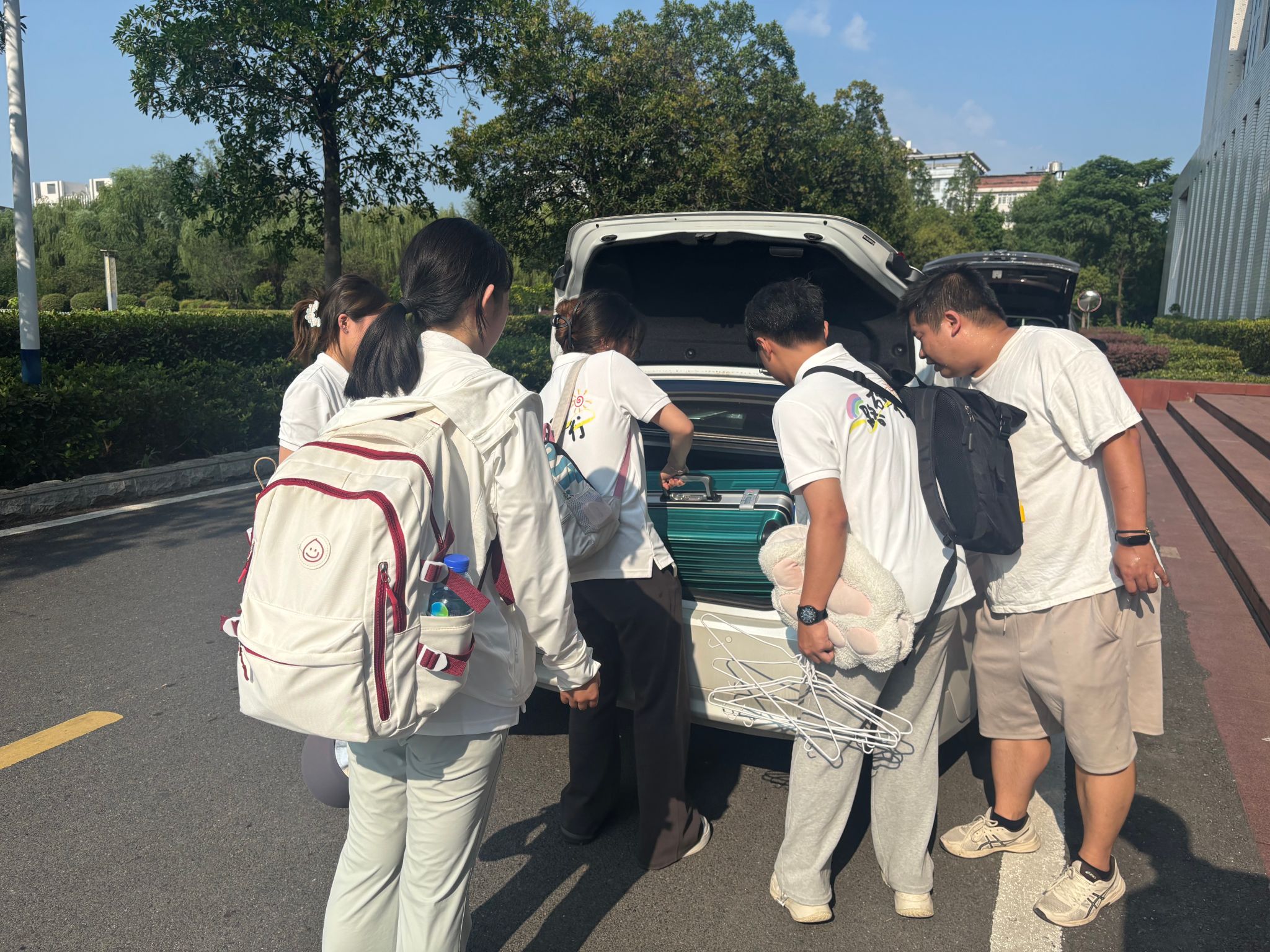 出发当天,阳光明媚、微风拂面。实践团指导老师和队员们早早地来到了天工楼,将准备好的物资整齐地装载到运输车辆上。大家分工明确、有条不紊,有的负责搬运物资,有的负责清点数量,有的负责固定货物。经过一番忙碌,所有物资都安全装车。