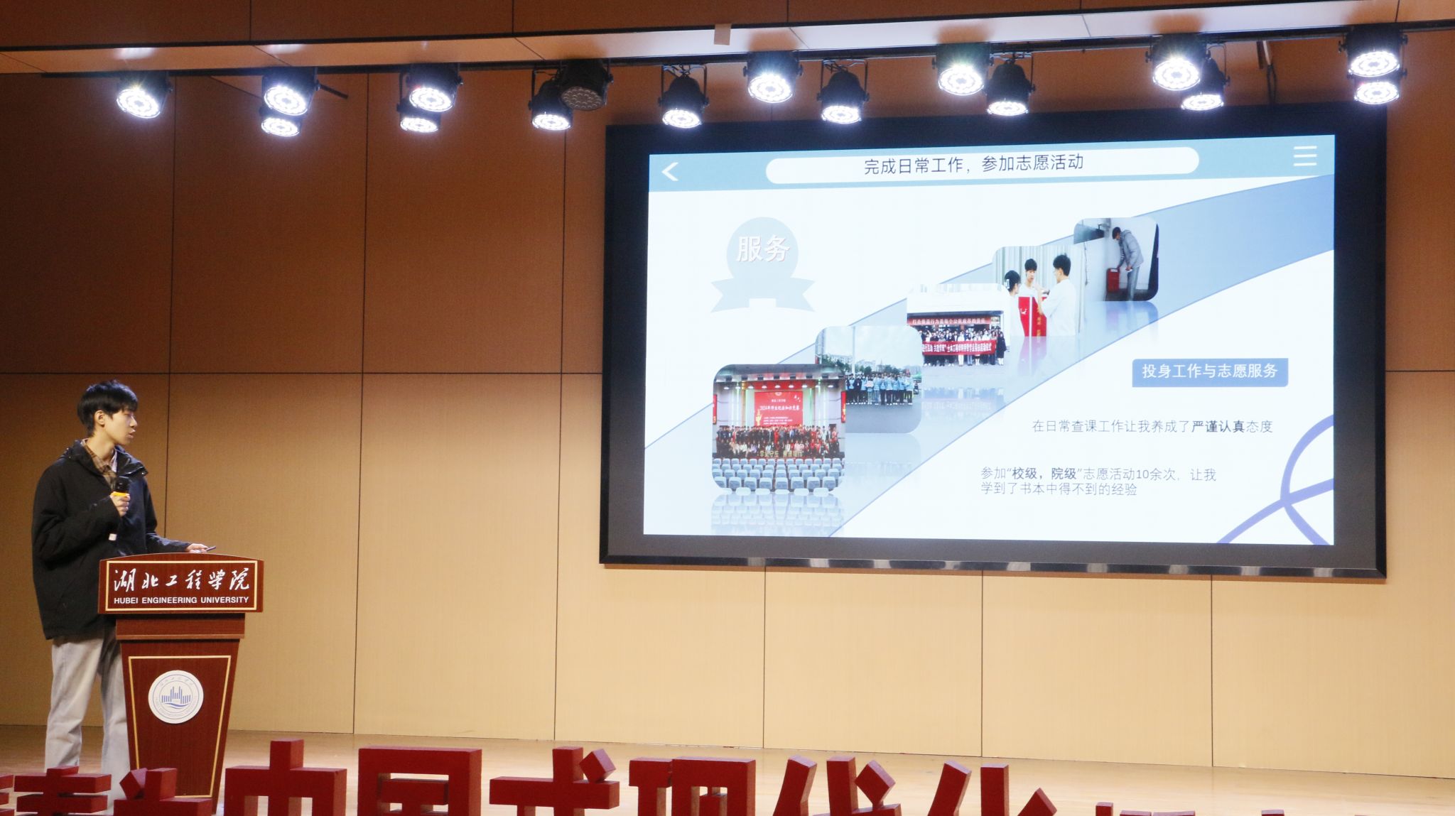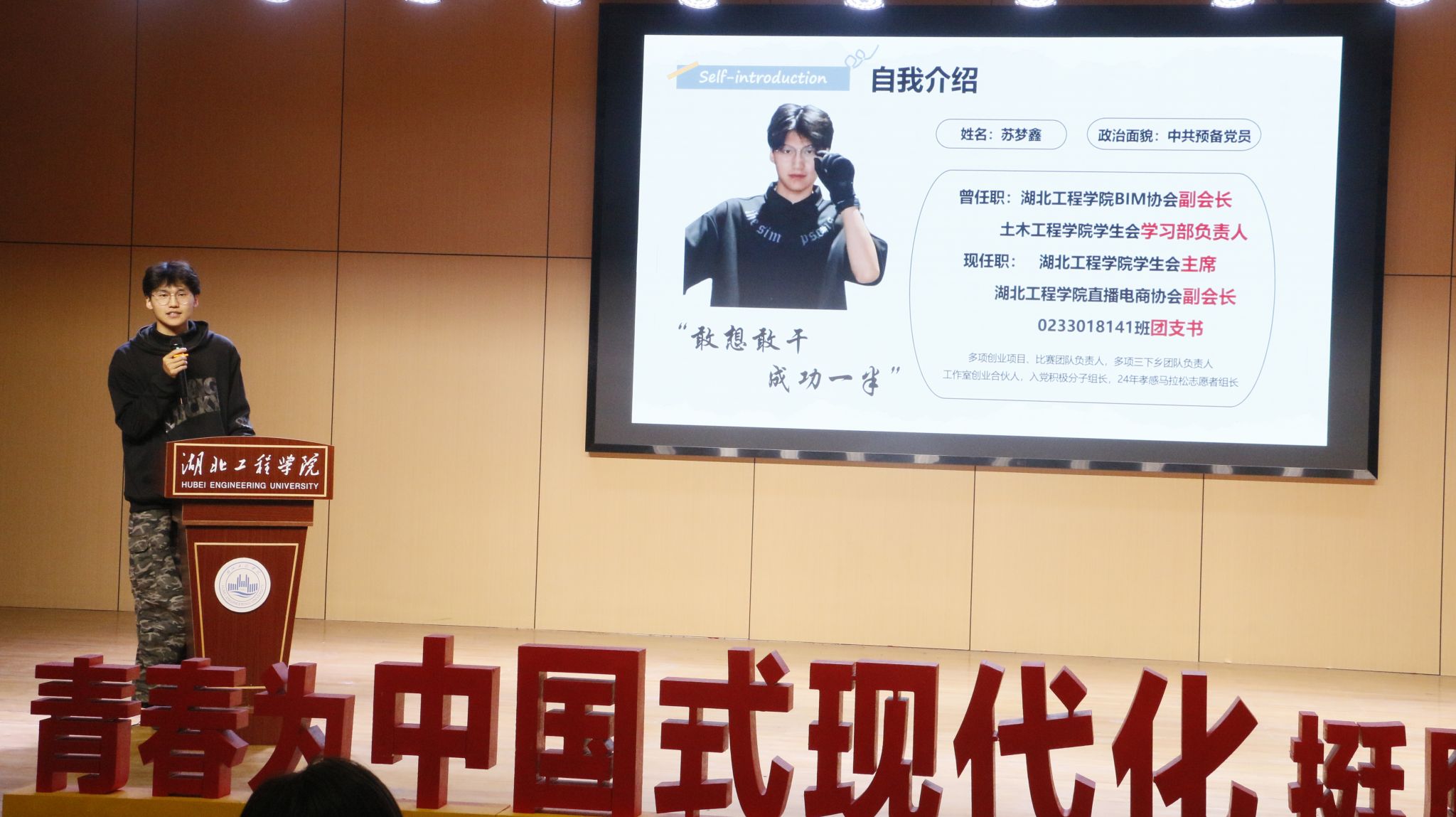 会议第二项议程,历任学生干部代表和莹、李梦茹、赵俊豪、苏梦鑫四位同学依次上台分享。他们结合自身经历,从志愿服务、创新实践、学习工作和团队协作等多个角度,分享了宝贵的经验和心得。他们真挚的讲述中充满了对团学工作的热爱与不舍,并寄语新成员们要“敢于担当,乐于奉献,善于学习”,将TYC234CC太阳成集团团学组织的优良传统发扬光大。
