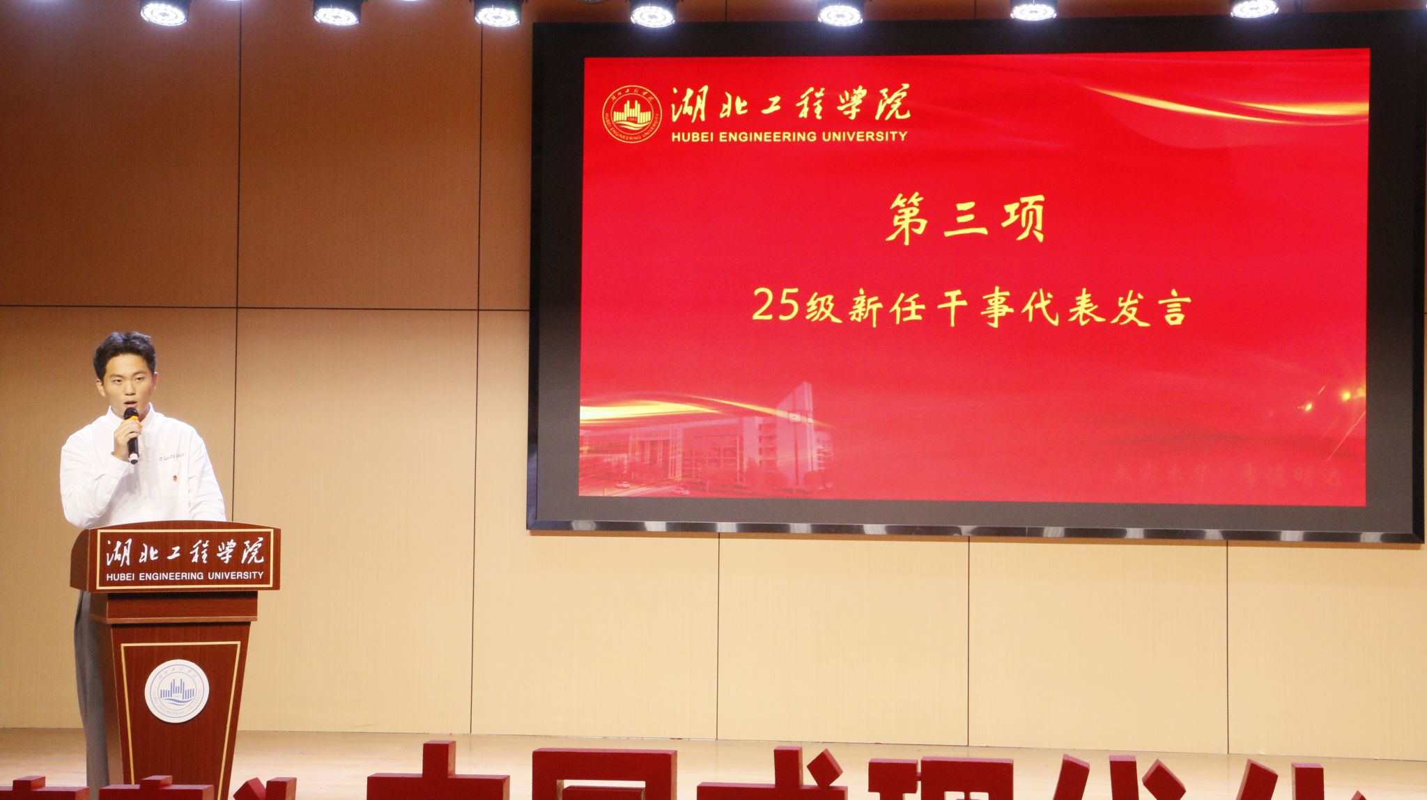 带着对未来的憧憬与热情,会议进入第三项议程。2025级新成员代表:学生会组织部新任干事尚怡鹏、青年志愿者协会文宣部新任干事樊潮慧同学先后发言。他们表达了对加入学院团委大家庭的荣幸与激动,并表示将以受表彰的学长学姐和历任干部为榜样,虚心学习,快速成长,以最饱满的热情和最务实的态度投入到新的工作中,为学院团学事业注入新鲜活力。