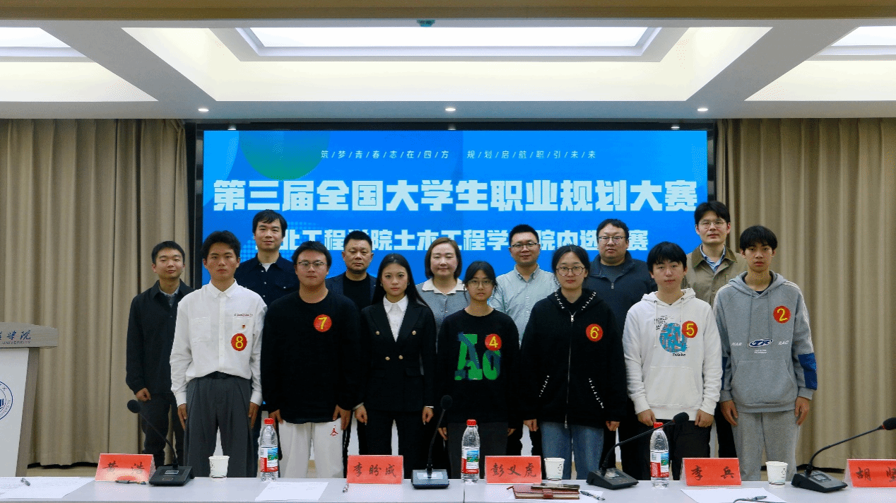 经过前期材料提交和院内初审,最终共有八名同学进入汇报展示环节。首先,就业赛道的四名选手依次登台,他们结合土木专业特色,立足行业发展前沿,展现了清晰的职业目标和扎实的综合素养;随后,成长赛道的四名选手围绕自我认知、职业环境分析、职业目标定位、评估调整以及行动计划等多个维度,全面而深入地阐述了各自的职业规划蓝图,聚焦个人能力提升与未来发展规划,呈现新时代土木学子的成长路径与奋斗姿态。
