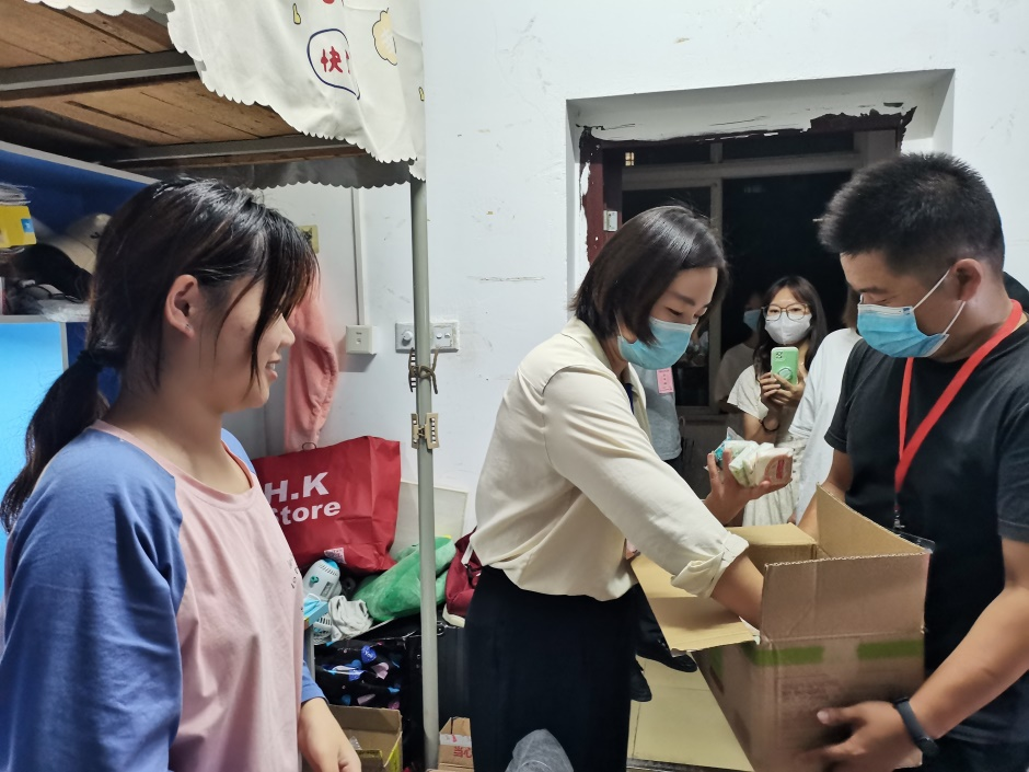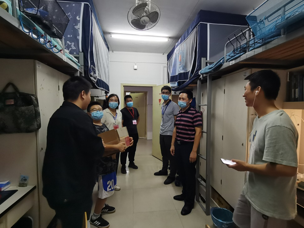中秋节来临之际,院党总支书记万建华、副书记魏佩带领辅导员老师们深入学生宿舍走访慰问在校学生,为他们送上中秋月饼和节日祝福。
