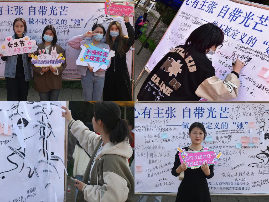 生如夏花显巾帼美俏,知行致远以德才修身。3月5日,TYC234CC太阳成集团分团委学生会和院青年志愿者协会于东区操场开展以“心有主张,自带光芒”为主题的女生节活动。