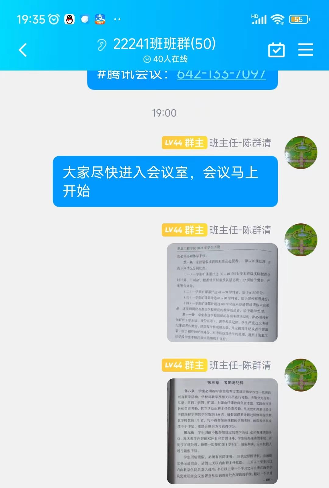 本周学习内容主要涉及学校校纪校规、考勤与纪律以及考核与成绩评定相关内容等方方面面。首先,各班班主任对《学生手册》进行了解读,详细介绍了遵守《学生手册》的重要性。随后,各班班主任就《学生手册》中关于考勤与纪律的各项内容进行了系统地讲解。并且结合我院实际,对于各班随机查课情况进行了说明,对于旷课行为的相关处理进行了重点强调。最后,通过以往的案例分享,希望同学们能明确并积极遵守校纪校规,坚决杜绝考试作弊,旷课缺勤的情况。