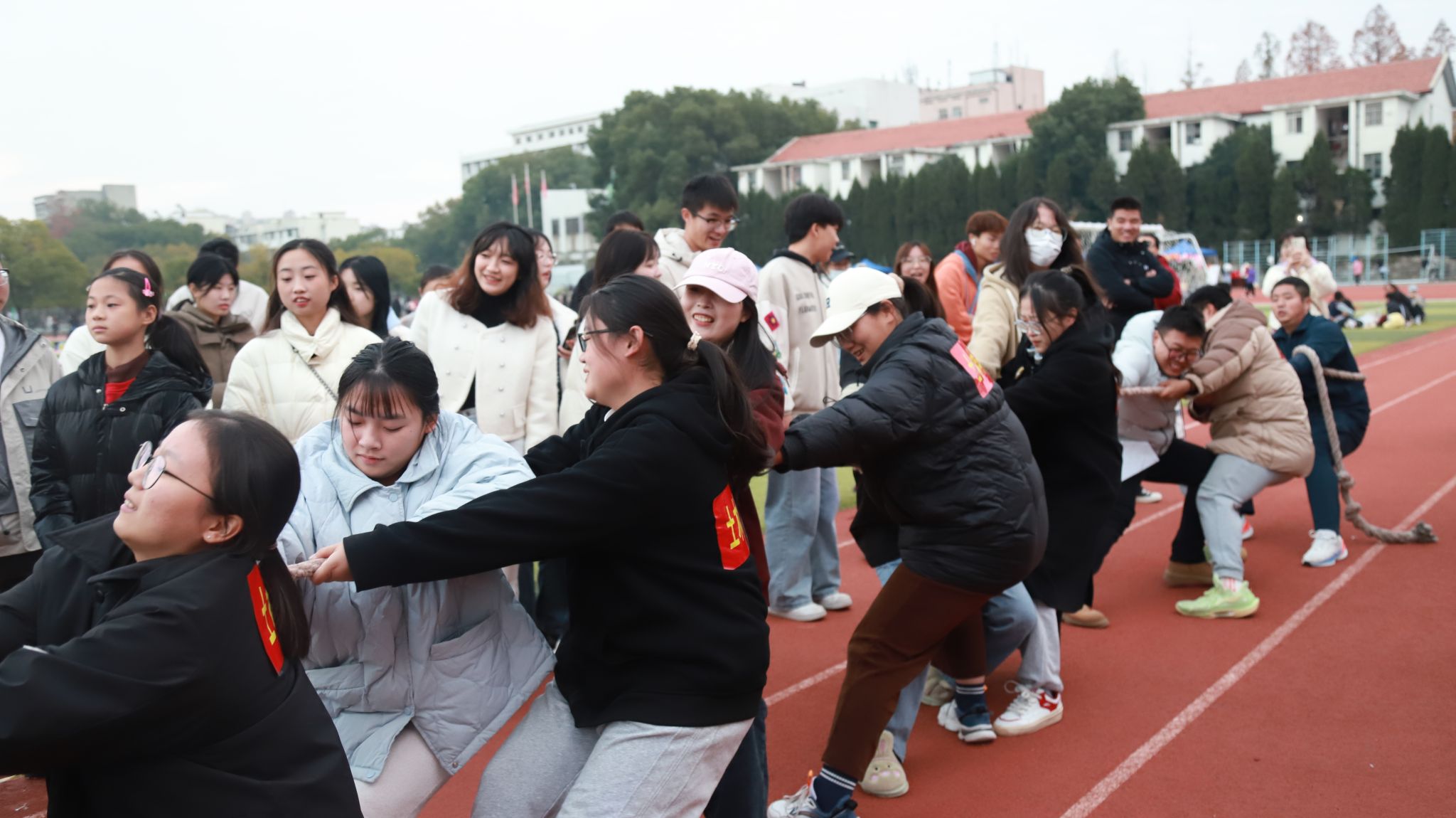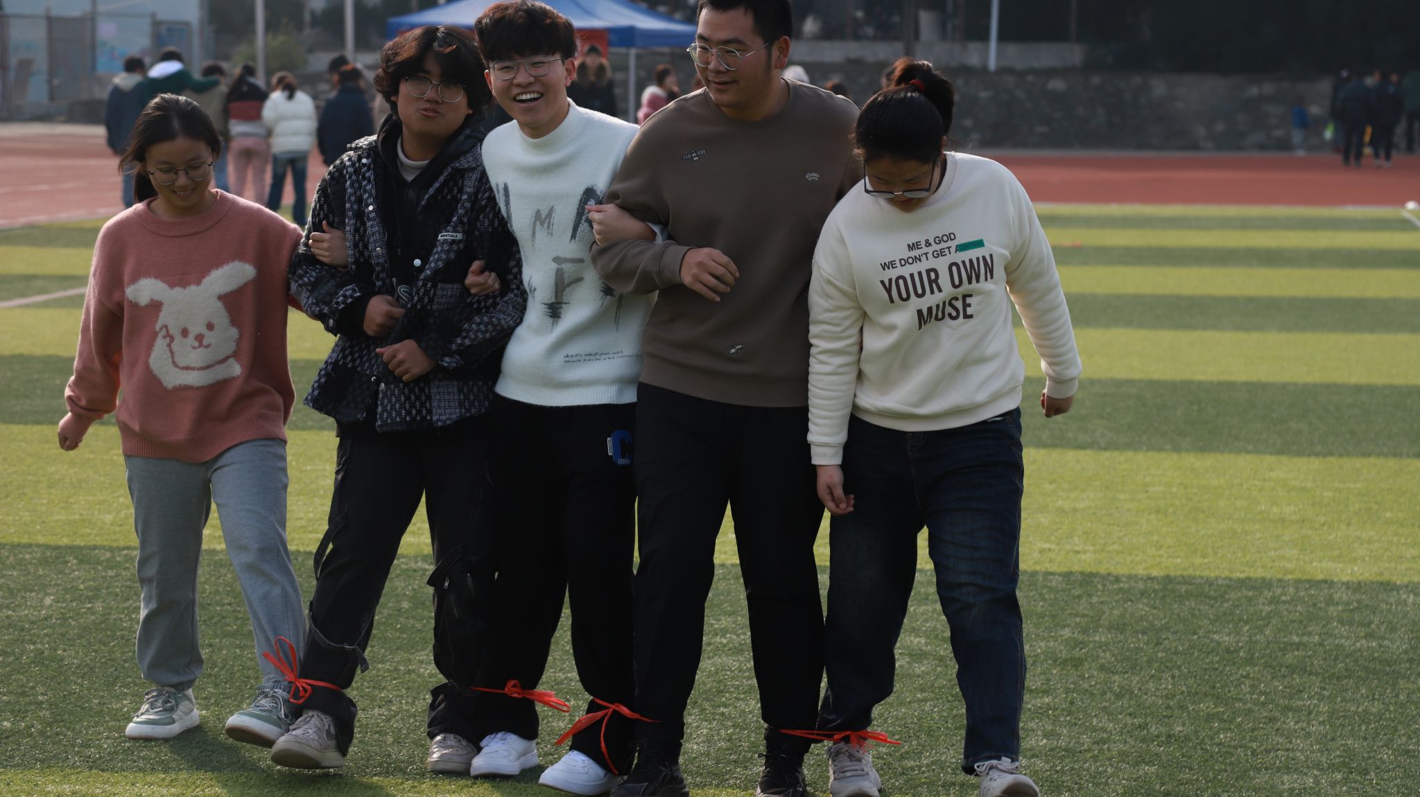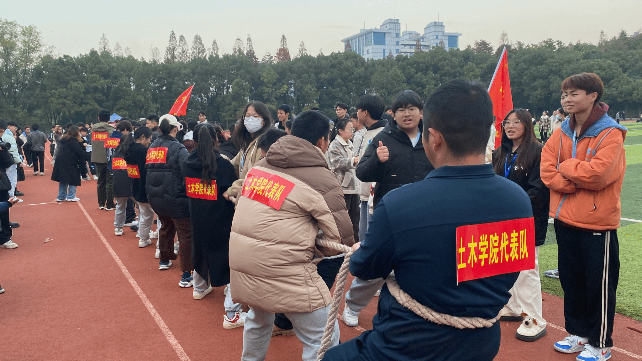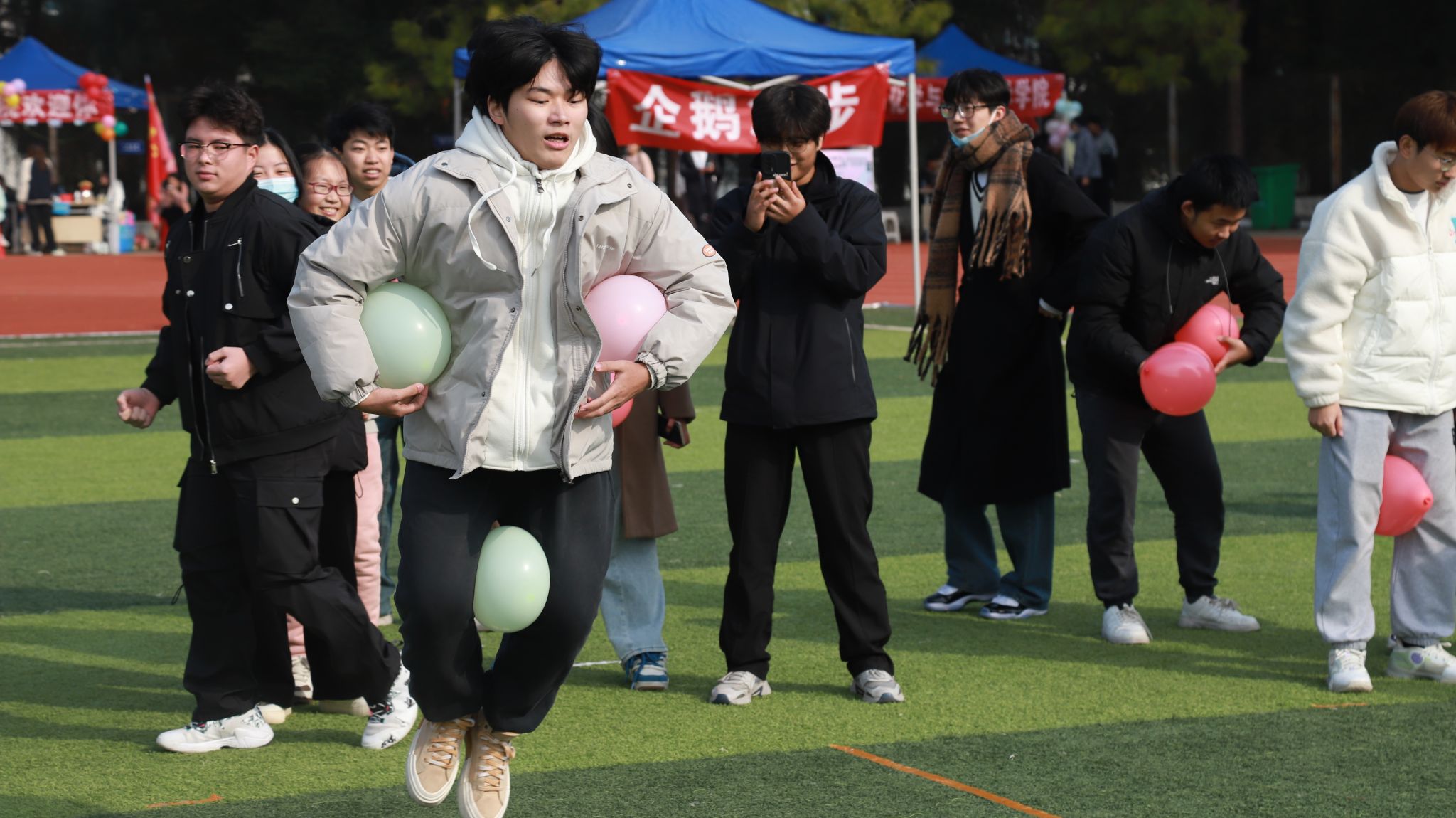 本次活动由大学生心理健康中心主办,各学院组织学生参加。心理运动会开始之前,各学院代表队一起参加了开幕式,在开幕式环节由朋辈中心的工作人员简要介绍了本次趣味运动会的主要流程和相关注意事项。本次心理趣味运动会设有七彩连环炮”、“鸳鸯双飞”、“过河搭桥”、“企鹅漫步”以及拔河等10个集趣味性与运动性于一体的团体项目,分10个场地同时进行。同学们本着“友谊第一、比赛第二、公平竞争”的原则,遵守赛场纪律,遵守比赛规则,顽强拼搏、奋勇争先、赛出风格、赛出水平。