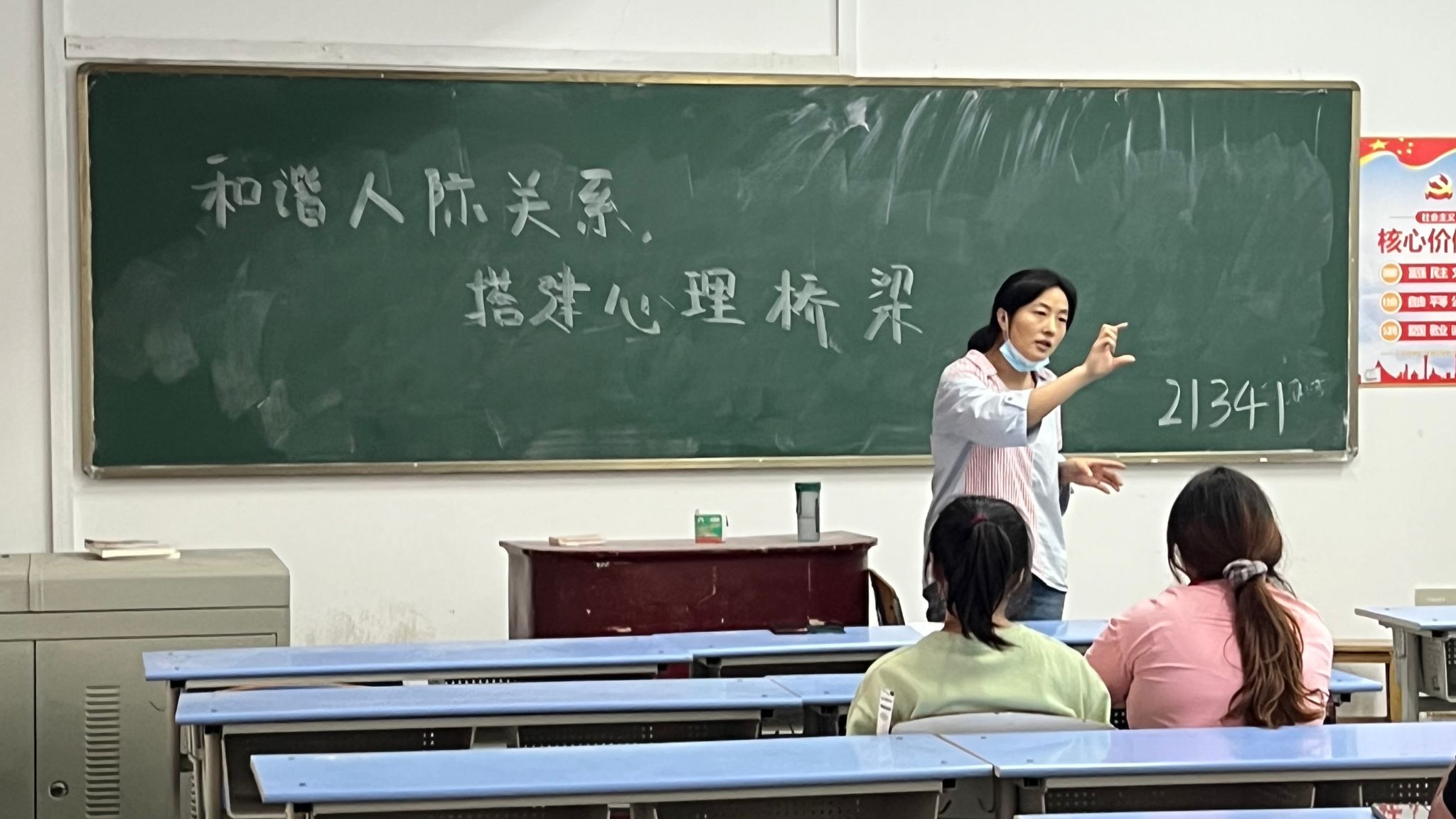 活动由各班心理委员主持班会开场,首先介绍了本次班会召开的目的与主题思想“和谐人际关系”的意义。然后由各班班长给同学们讲解了因心理问题出现的一些重大事故的案例,提醒同学们要注意心理问题,要正视自己的心理变化,懂得如何正确释放心理压力。最后,给同学们介绍了几种正确沟通与倾诉的方法。