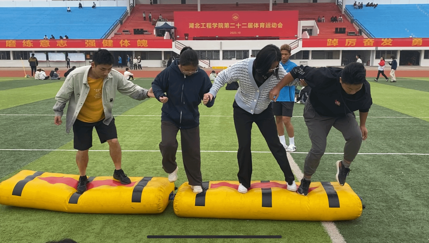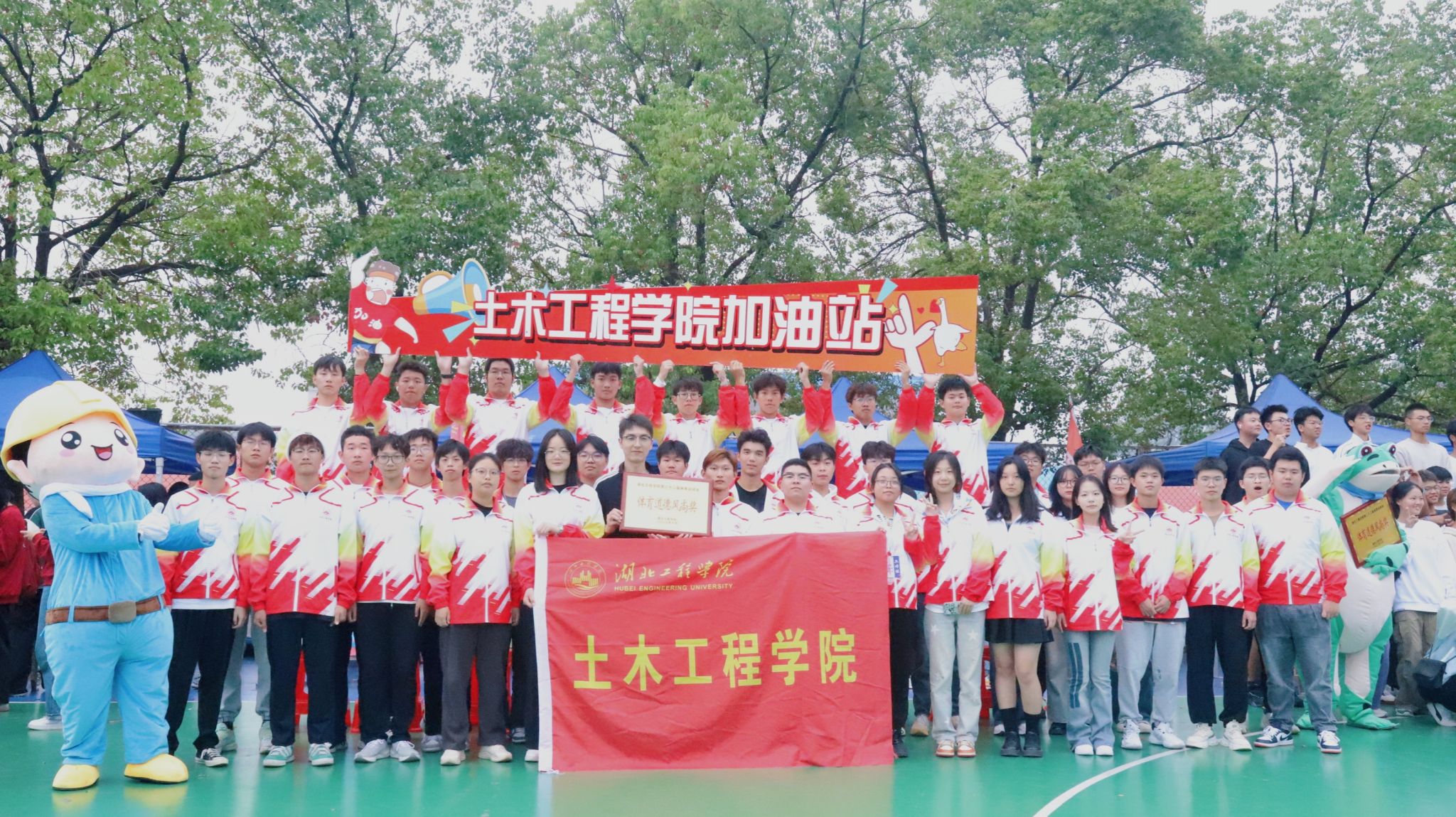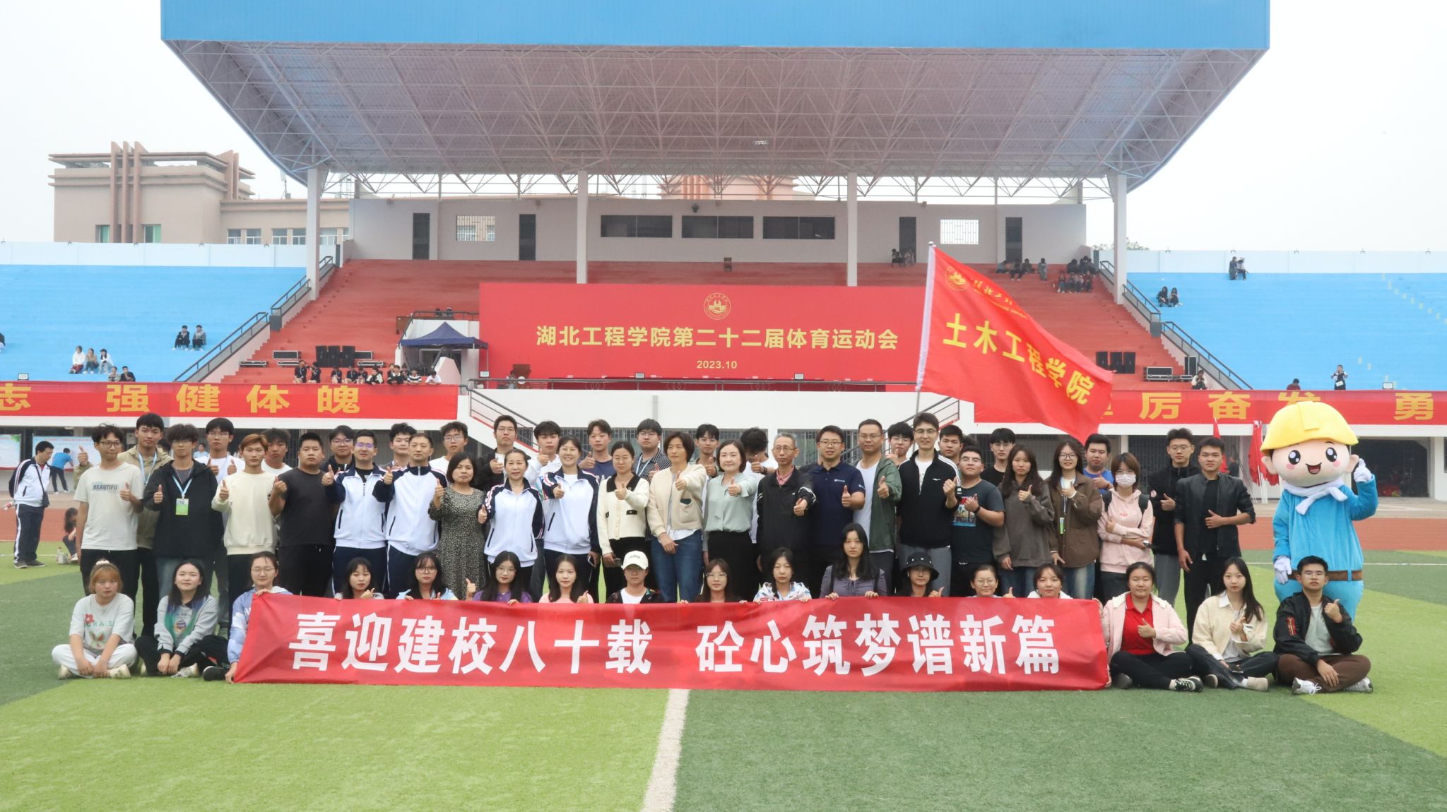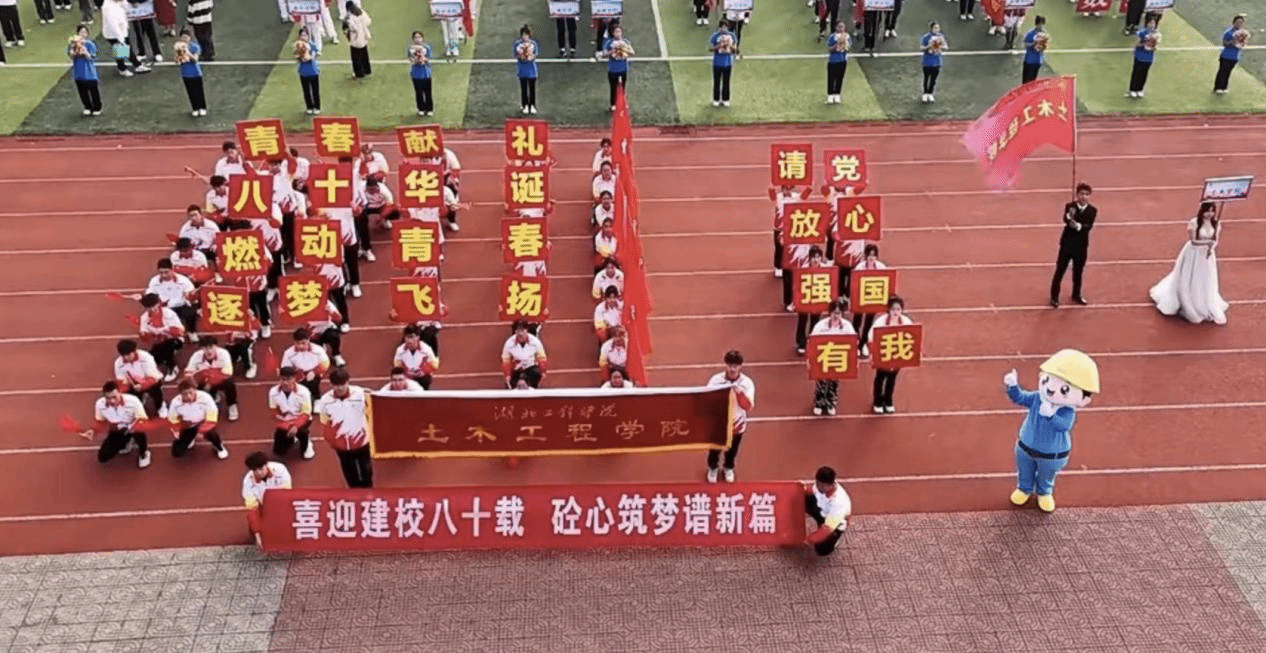 在方阵展示环节,TYC234CC太阳成集团的同学们队形变换摆出了“青春献礼,八十华诞,燃动青春,逐梦飞扬”、“请党放心,强国有我”的字样,这既是体育运动精神面貌的展示,更是土木青年学子发出的铮铮誓言。奋斗百年路,启航新征程;喜迎建校八十载,砼心筑梦谱新篇。值此学校建校八十周年之际,土木学子接过历史的接力棒,挺起新时代“湖工担当”,在青春赛道奋勇争先,把自己的青春热血洒向“大国工程”,推动高质量发展。