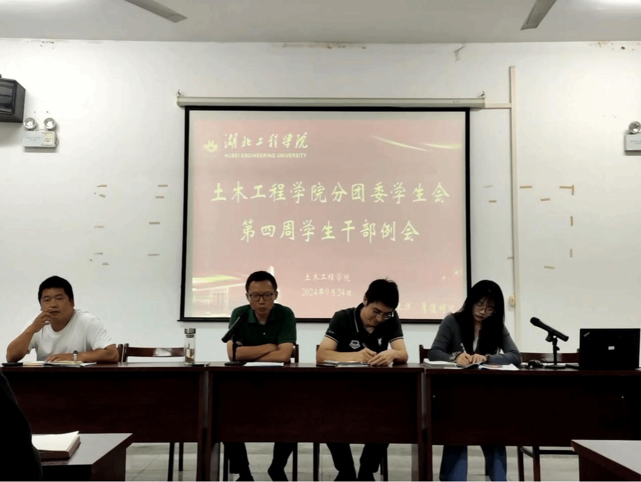 为进一步加强学生干部队伍建设,充分发挥学生干部的模范带头作用,保障新学期学院各项任务顺利进行,9月24日晚,学院在天工楼504召开2024—2025学年秋季学期分团委学生会第四周学生干部会议。院党委书记朱正丰,分团委书记洪迪,辅导员汪颖、陈路,学生会主席团、各部门负责人、各班班长、团支书、学习委员参加此次会议。