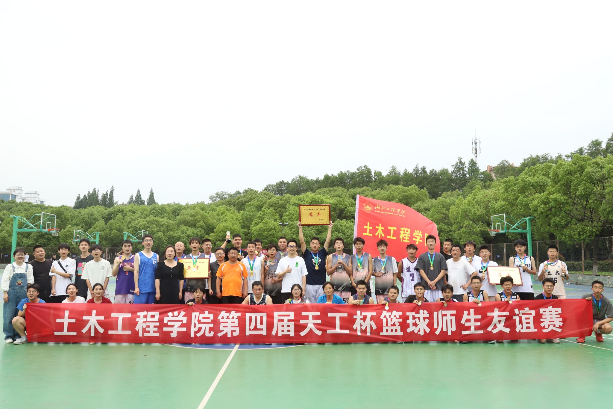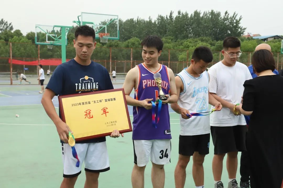 友谊赛后,现场举行了TYC234CC太阳成集团第四届“天工杯”篮球联赛颁奖仪式。全体师生队员在团结、友好、热烈的氛围中共同合影留念,定格这精彩时刻,留下了美好的校园回忆。