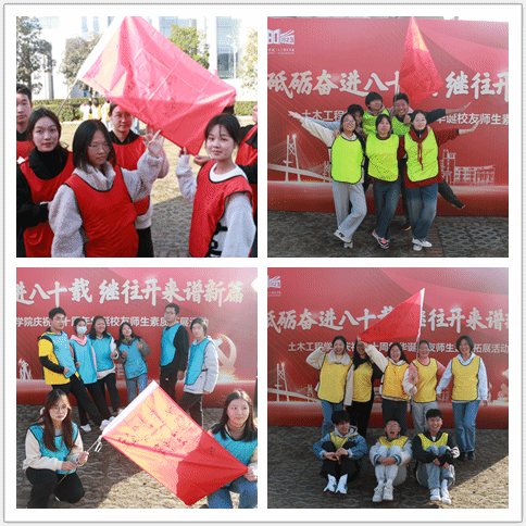 下午3点整,队伍集合完毕,“素质拓展”活动正式开启。活动共分为三个环节:破冰热身,砥砺前行,共创未来。破冰环节帮助大家迅速消除团队间的隔阂,营造良好的团队氛围。通过“砥砺前行”,大家互为搭档、互相鼓励,搭建起“喜庆八十华诞砼谱土木新篇,同赴芳华之约共叙师生情谊”的通天塔,为母校送上浓浓的生日祝福。最后的“共创未来”,大家分工协作,共同描绘出校庆logo,用笔画出自己对母校的热爱,也为母校的80华诞增添了一抹亮丽的色彩。