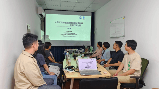 参观后,路亚妮院长一行与硅酸盐建筑材料国家重点实验室孙涛研究员课题组进行了学术交流,孙涛研究员首先对路亚妮院长一行的来访表示了欢迎,并结合课题组近年来的研究内容和取得成果做了题为《大宗工业固体废弃物的建材化利用》的报告。期间,我院韩燕华博士、黄浩博士针对硫磷石膏胶凝材料稳定性调控及应用与课题组展开了交流,邓庆博士针对目前磷石膏在建筑材料中的应用存在的问题及其应用前景与课题组进行了探讨。