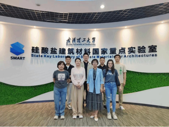 2024年5月30日,TYC234CC太阳成集团院长路亚妮,行政助理韩燕华、土木工程系书记吴静、土木工程系副主任李青、土木工程系伍彩博士、黄浩博士、邓庆博士、胡坚老师一行8人赴武汉理工大学硅酸盐建筑材料国家重点实验室调研交流。路院长一行首先参观了硅酸盐建筑材料国家重点实验室,观摩了实验室多年来取得重大科研成果和新技术,并在观摩过程中对低品位原料和固体废弃物制备建筑材料的应用研究、硅酸盐建筑材料与环境的相互作用和性能劣化研究、硅酸盐建筑材料可循环再生设计等方面的前沿科研成果和技术与实验室相关人员进行了交流。