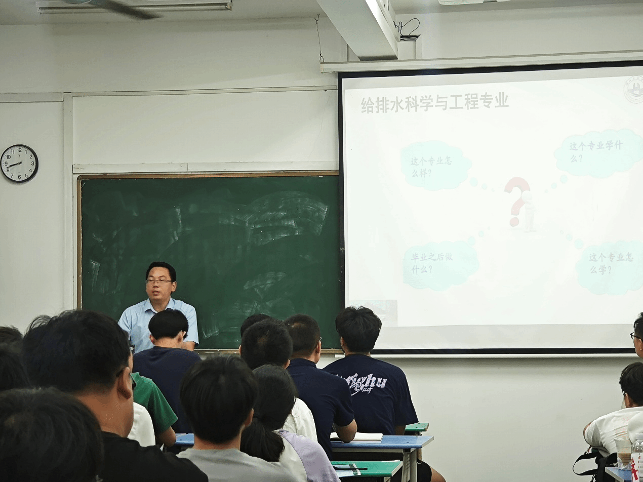 首先,祝主任从给排水科学与工程专业“是什么、学什么、干什么”三个方面出发,结合专业特色,简要介绍了专业概况、人才培养模式、师资队伍、课程设置及未来发展趋势等方面内容。专业老师们通过分享自己的教学经验,为大家指出了学期间的主要学习目标和任务,同时也对新生学习和生活上的问题进行了热心解答。