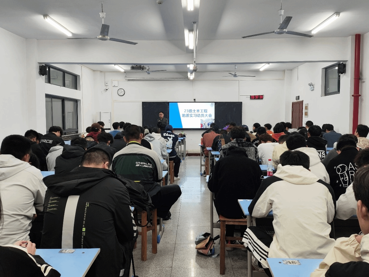 实习活动开始之前,土木工程系制订了详细的实习方案和计划,于10月20日晚召开了工程地质实习动员大会,在实习动员会上,郭波副院长作了实习动员并提了实习要求,专业教师刘凯作了工程地质实习要学什么、怎么学的报告,其他工程地质实践经验丰富、教学能力强的教师团队也提前备课,为此次实践教学活动顺利实施提供了充分的保障。