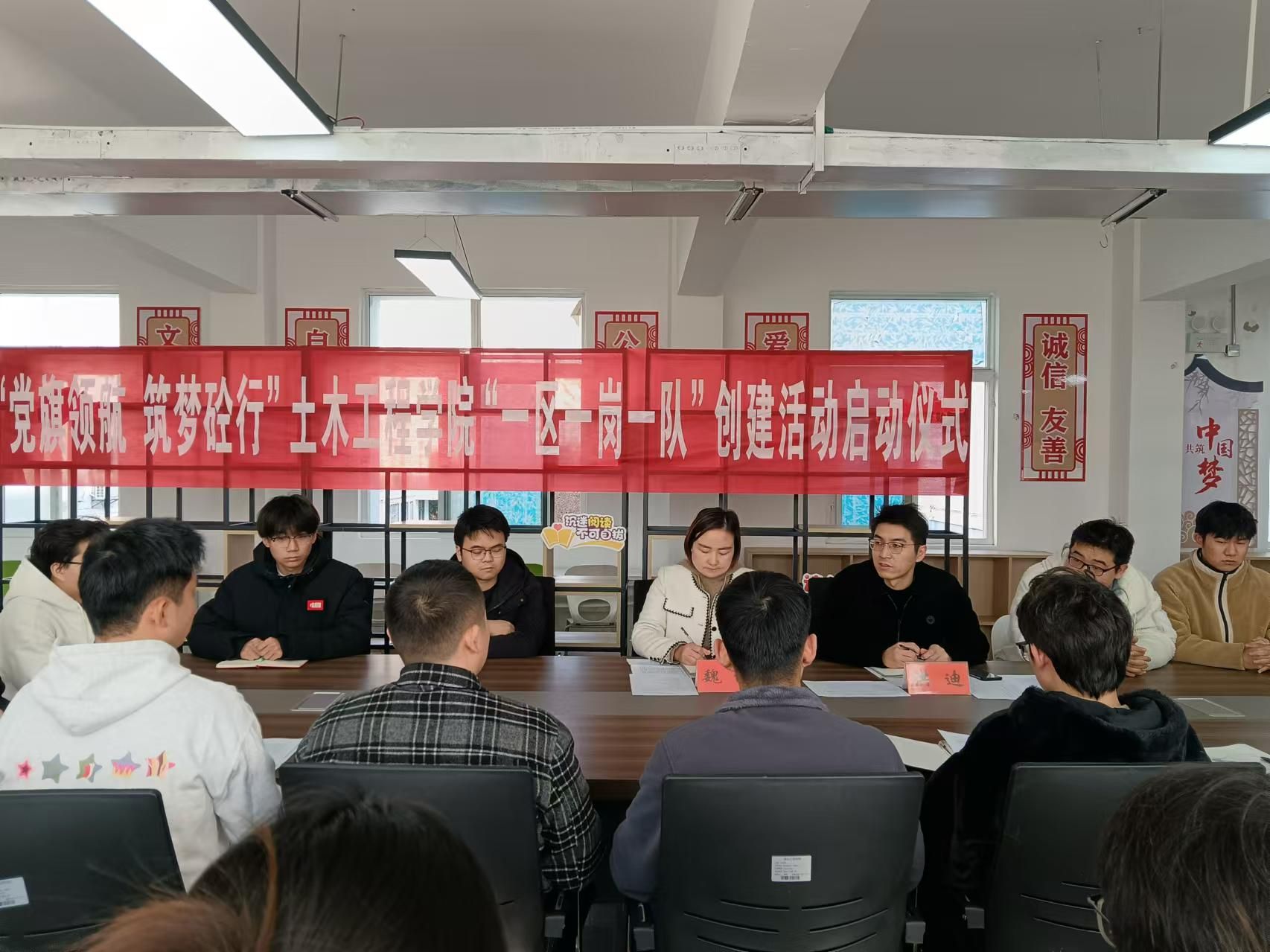 会上,魏佩老师首先详细介绍了学院党委“一区一岗一队”创建活动的背景和重要意义,并对基本内涵、服务内容和服务体系进行了全面系统的解读。她表示,“一区一岗一队”创建活动既是践行学校党委“三抓三强三提升”工作思路的必然要求,是打造学院党委“砼心五筑”党建工作品牌的创新举措,也是立项申报“筑梦砼行”辅导员工作室建设举措的具体实践。各党支部要提高认识,将思想和行动统一到学校和学院党委党建工作思路上来,认真践行工作标准,充分发挥党支部战斗堡垒作用。广大学生党员要依托该载体,不断提高自身素质和能力水平,发挥先锋模范作用,通过划定一个区,设置一个岗,树立一面旗,带动一大片,共同营造互帮互助、积极向上的校园文化氛围。