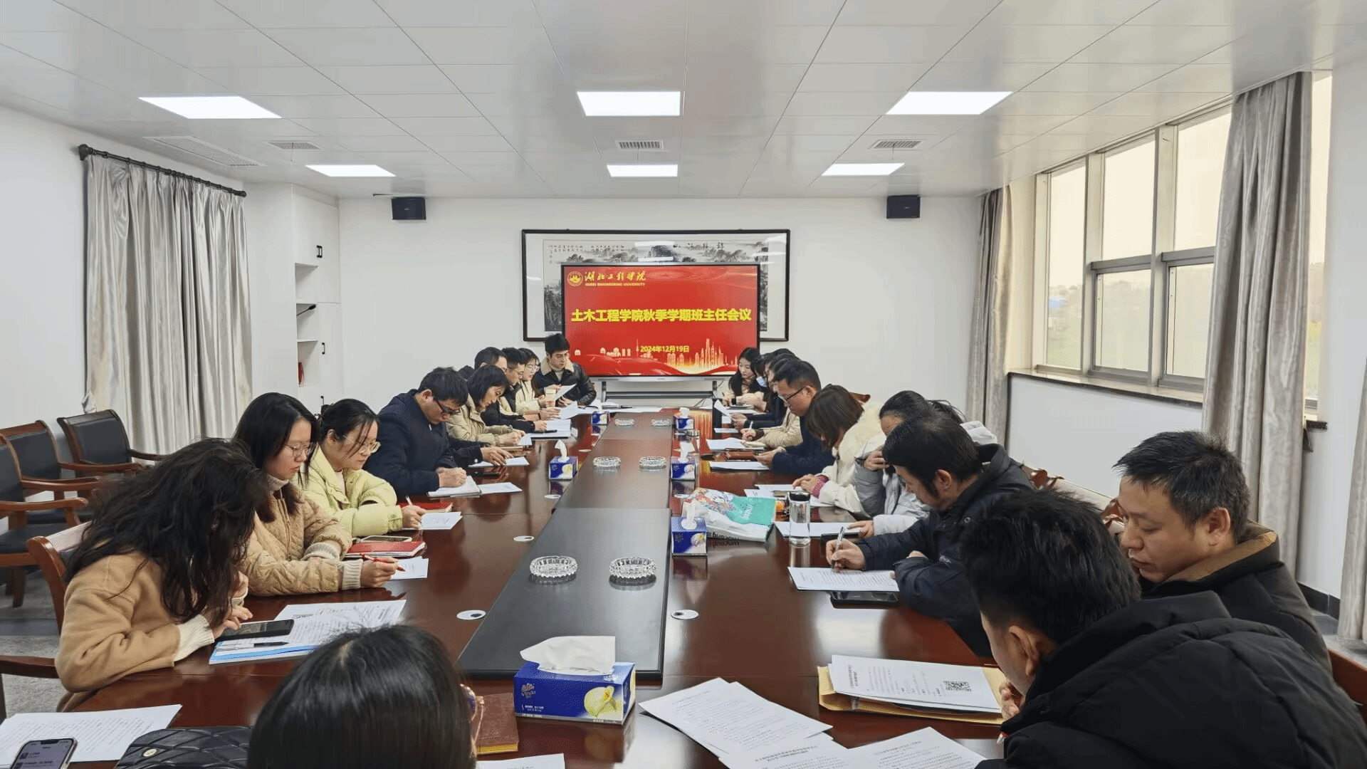 为切实提高期末学生管理工作实效,做好学校和学院近期重点工作和学生安全教育管理,学院于12月19日下午在天工楼404会议室召开2024年秋季学期第四次班主任工作会,学院党委书记朱正丰、党委副书记魏佩、副院长韩燕华、全体班主任及辅导员参加会议,会议由学院党委副书记魏佩主持。