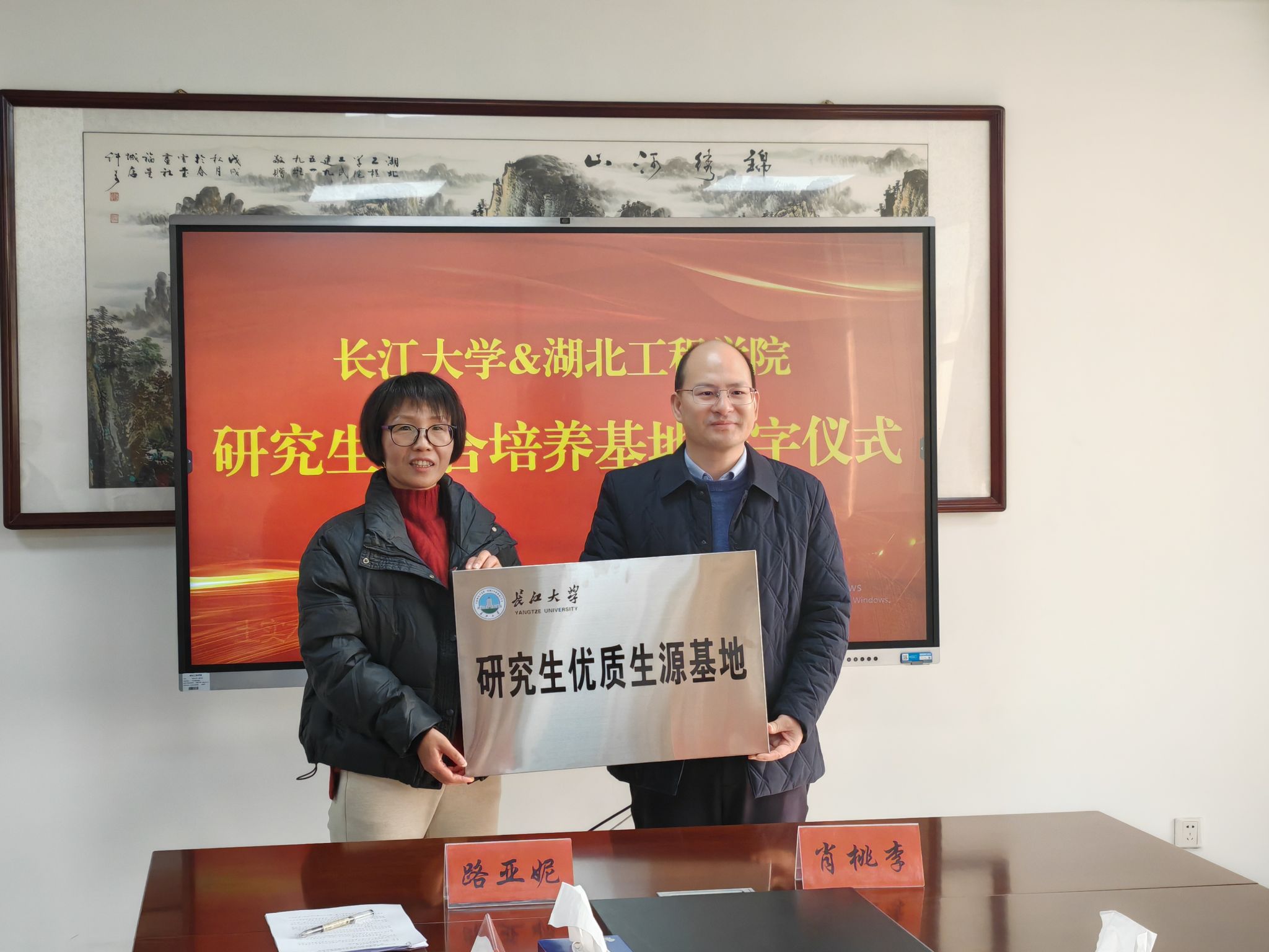 12月19日,为加强校际合作与交流,推动研究生教育的高质量发展,太阳成城集团tyc234cc与长江大学研究生联合培养基地授牌仪式在学院天工楼四楼会议室举行。长江大学城市建设学院院长肖桃李一行莅临我校,参观我校TYC234CC太阳成集团相关实验室。我院路亚妮院长等院领导出席授牌仪式,双方共同见证这一推动双方高等教育协同发展的重要时刻。