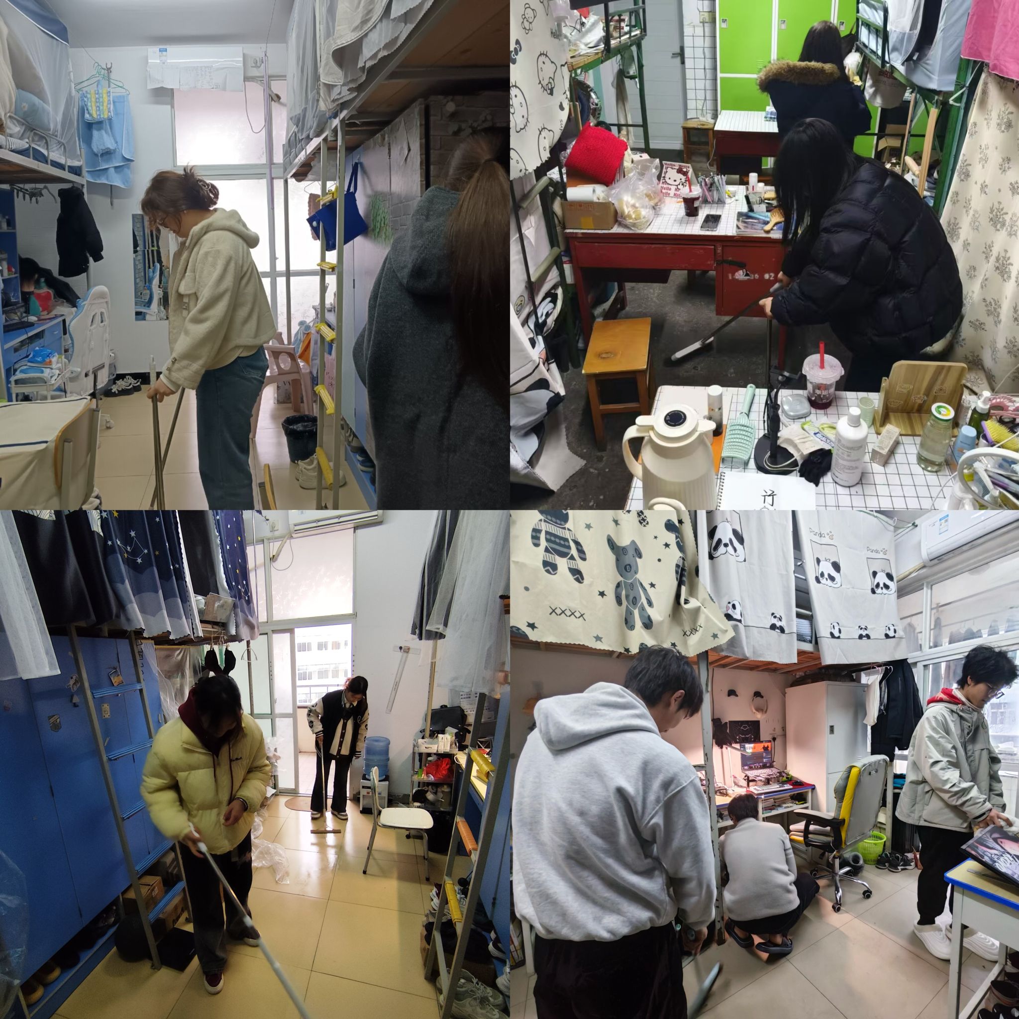 各寝室的同学也在寝室长的带领下,分工明确,相互协作,不仅清理了个人区域的卫生,还将洗漱台、卫生间打扫干净,宿舍内外焕然一新,展现了TYC234CC太阳成集团学子良好的生活习惯和集体荣誉感。