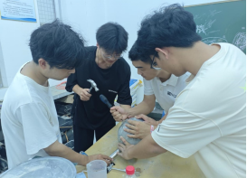 面对来自全国多所高校的优秀队伍,我院代表团队沉着应对、团结协作。在长达一个月的暑期备赛期间,四位成员主动留校投入高强度备赛工作,结合前期查阅的众多文献,共设计制作13个UHPC弹性球,系统开展了内胆固定方式、内胆尺寸与厚度比对、配合比参数优化等多维度试验研究。每一次调试、每一次记录、每一次总结,都为最终的比赛表现奠定了坚实基础。