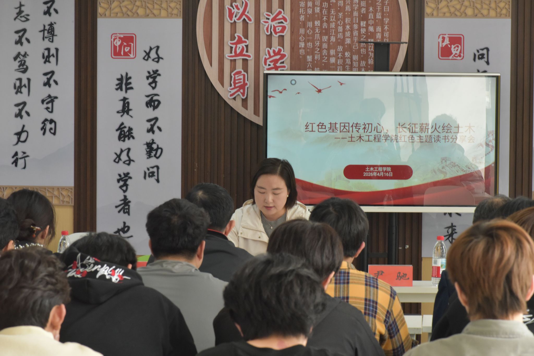 在主题分享环节,邓老师紧扣长征胜利 90 周年时代背景,深入解读长征精神 “坚定信念、不畏艰险、团结协作、百折不挠” 的深刻内涵,向同学们推荐 8 本经典红色书籍,引导大家在阅读中感悟红色力量、汲取精神养分,努力成长为有理想、懂技术、敢担当的新时代土木人。学院组织员刘伟静老师以长沙 “4・29” 自建房倒塌事故为鲜活案例警示全体学子,土木工程是承载生命的科学,工程失守就是生命失守,唯有将长征精神刻入职业基因,坚守规范底线、恪守工程良知,才能真正践行土木担当、守护人民生命财产安全。