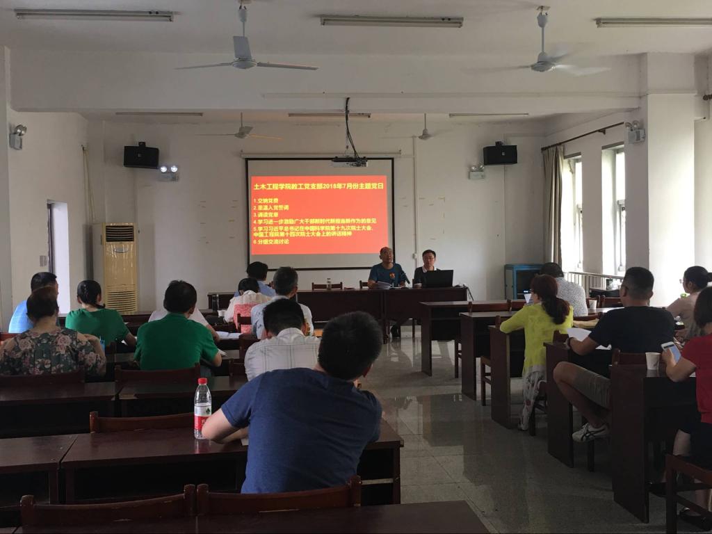 TYC234CC太阳成集团教工党支部2018年7月份主题党日活动于7月6日上午在天工楼504举行。本次主题党日由教工党支部副书记郭波老师主持。