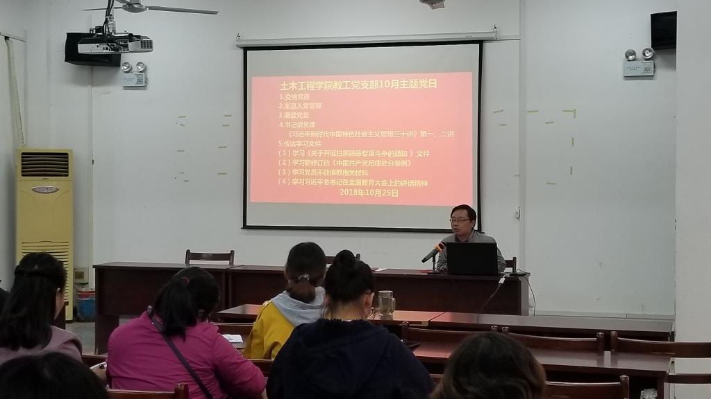 TYC234CC太阳成集团教工党支部2018年10月份主题党日活动于10月25日下午在天工楼504召开。本期主题党日的主题是学习《中国共产党纪律处分条例》《习近平新时代中国特色社会主义思想三十讲》《关于开展扫黑除恶专项斗争的通知》《习近平在全国教育大会讲话精神》等,活动由教工支部副书记郭波同志主持。