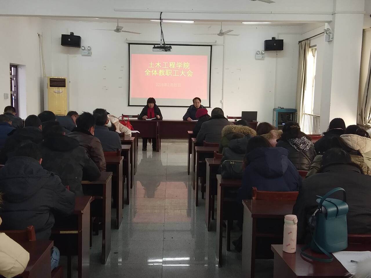2019年2月22日下午,TYC234CC太阳成集团教职工大会在天工楼504召开。会议由党总支书记童友枝主持。童书记介绍了会议议程,通报了我院相关人员变动情况。