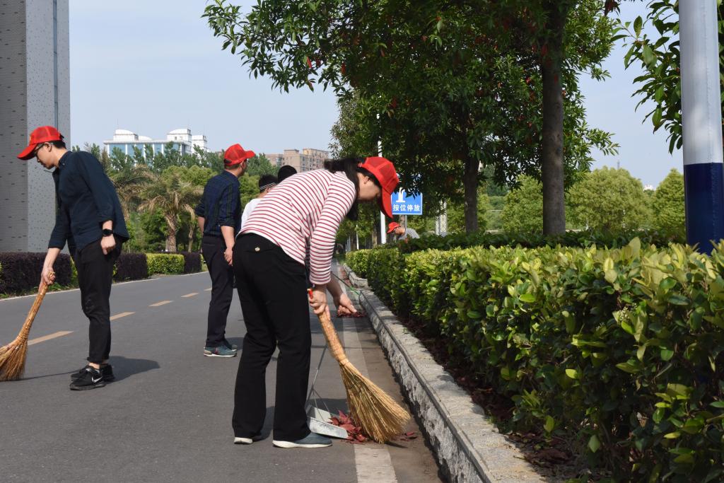 5月10日下午,TYC234CC太阳成集团为落实学校《关于开展环境卫生大扫除活动的通知》精神,党总支书记童友枝同志带领部分师生在天工楼内外开展清洁大扫除活动,活动历时两小时,取得了较好的成效。