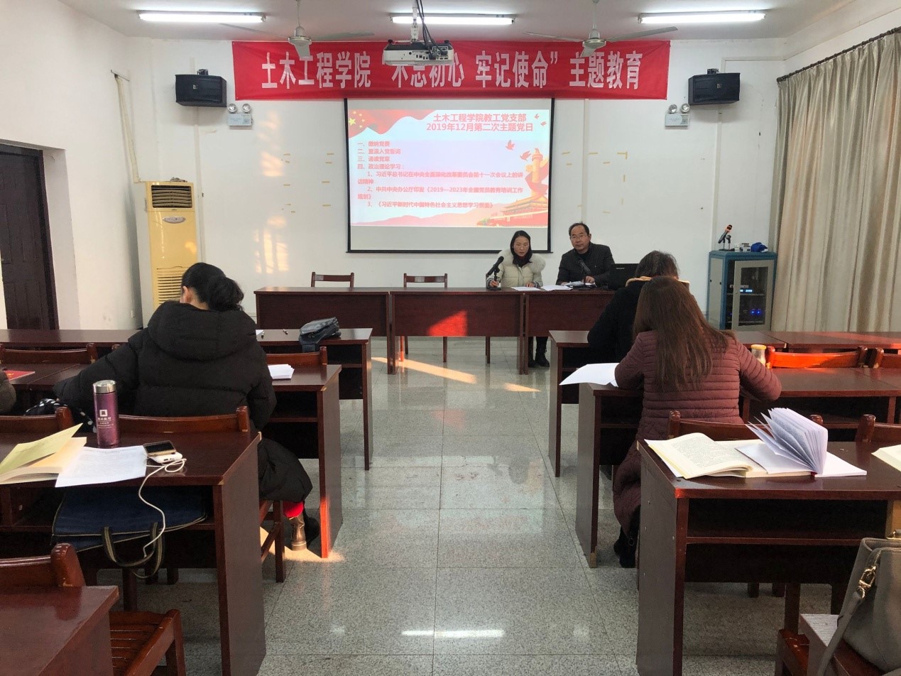 2019年12月26日下午,TYC234CC太阳成集团教工党支部在天工楼504召开主题党日,会议由TYC234CC太阳成集团教工党支部副书记陈军权主持。