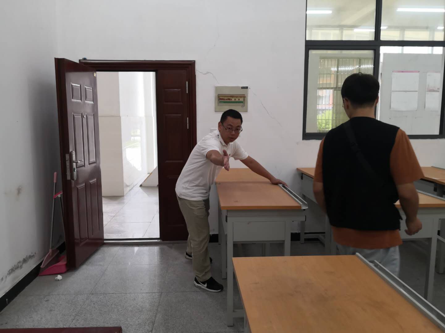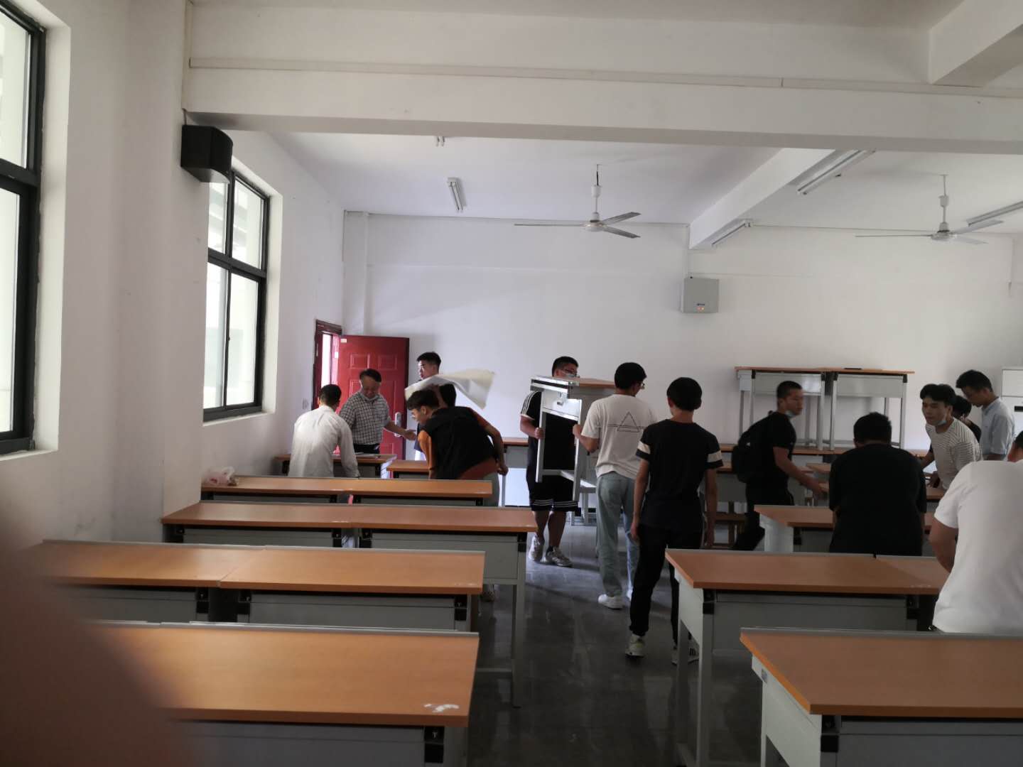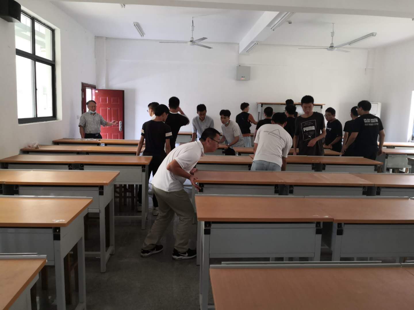 下午三点,李院长带领二十余人的队伍便开始了行动,一齐涌进了TYC234CC太阳成集团教学楼。大家齐心协力,把原先的教室课桌重新进行了排列布置,对教室进行了整理打扫。一下午时间,天工楼及天成楼教室被整理得焕然一新。看到整齐的课桌、干净的地板、明亮的教室,志愿者学生纷纷表示,看到新的课桌椅布置,有一种更想走进教室学习的感觉。