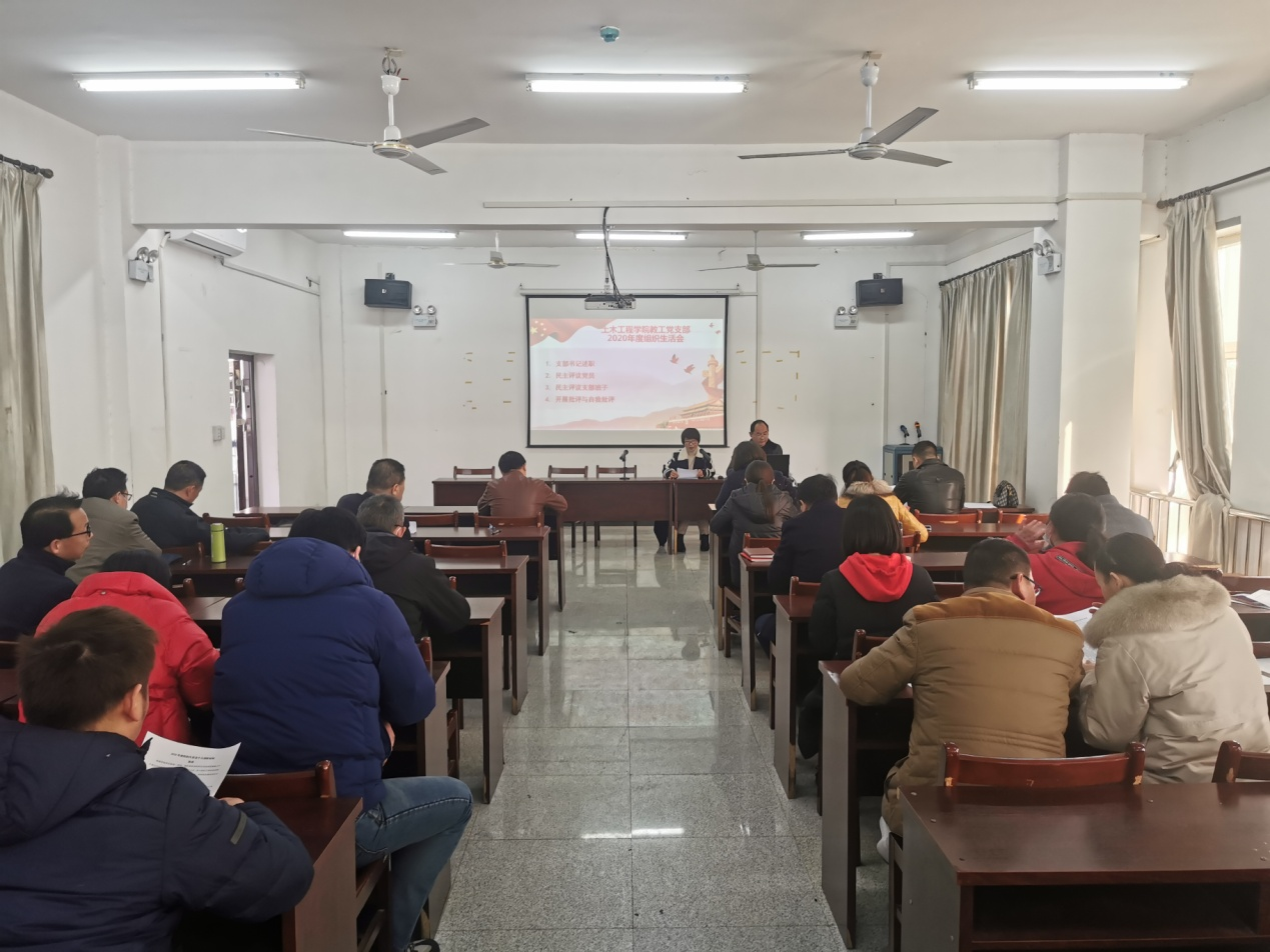 TYC234CC太阳成集团教工党支部2020年度组织生活会及民主评议党员活动于3月4日下午在天工楼504进行。教工党支部副书记陈军权主持了会议。