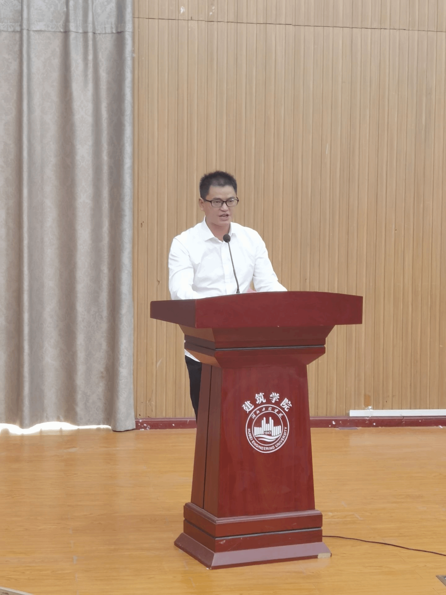 李晓目院长以“新起点新目标重整行装再出发”为题做主题报告,对学院的历史进行了全面介绍,同时展望学院发展前景,并对新生提出了要求和期望。其次是教师代表颜燕祥发言,颜老师用慷慨激昂的情绪和洪亮的嗓音激励了新生,用自己的经历告诉他们,步入大学后要确立目标并为之努力,不要虚度光阴。随后是高年级学生代表周子喆发言,他讲述了自己大学三年多的学习经验和切身感受,并对大一新生提出建议。最后有新生代表郭静雯发言,她表示在经历了军训以后收获了很多,作为当代大学生应当认真学好自己的专业课,做到脚踏实地,敢于担当,并祈愿与诸位同学一起努力,共同进步!