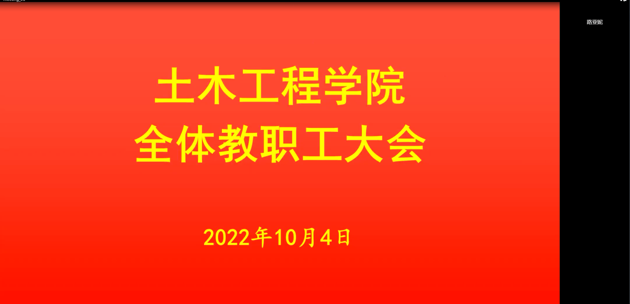 为传达落实学校秋季学期第9次疫情防控工作会议精神,进一步做好学院疫情防控工作,切实做好线下教学、人员流动等有关准备工作,10月4日晚上,TYC234CC太阳成集团召开线上全体教职工大会,院党政班子成员及全体教职工参加会议,会议由院长路亚妮主持。