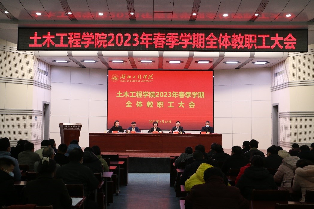 2月16日下午,TYC234CC太阳成集团在文学楼报告厅召开2023年春季学期教职工表彰暨全体教职工大会,院党政班子成员及全体教职工参加会议,会议由党委书记万建华主持。