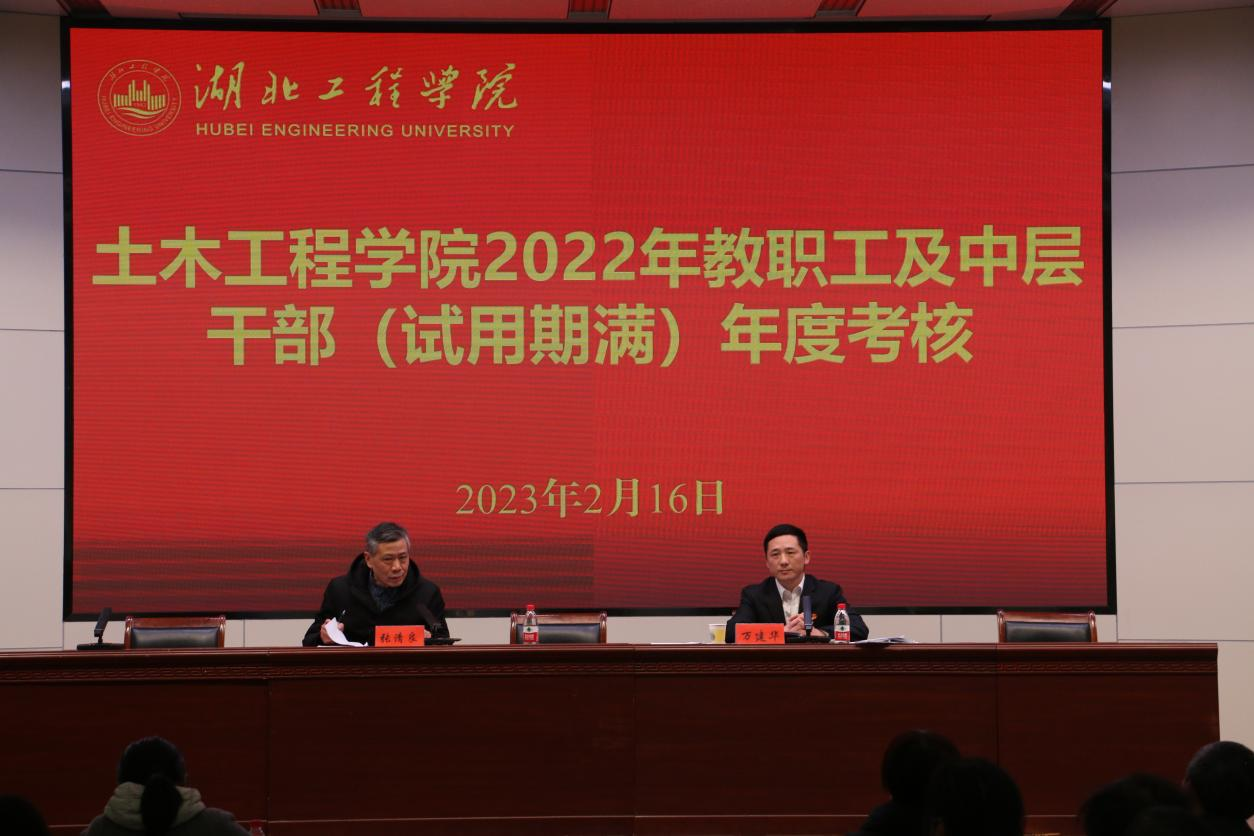 2月16日,根据学校2022年度中层干部年度考核和中层正、副职干部试用期满考核等工作安排,TYC234CC太阳成集团2022年教职工及中层干部(试用期满)年度考核在文学楼报告厅举行。学校第五考察组成员、学院领导班子及全体教职工参加,考核大会由党委书记万建华主持。