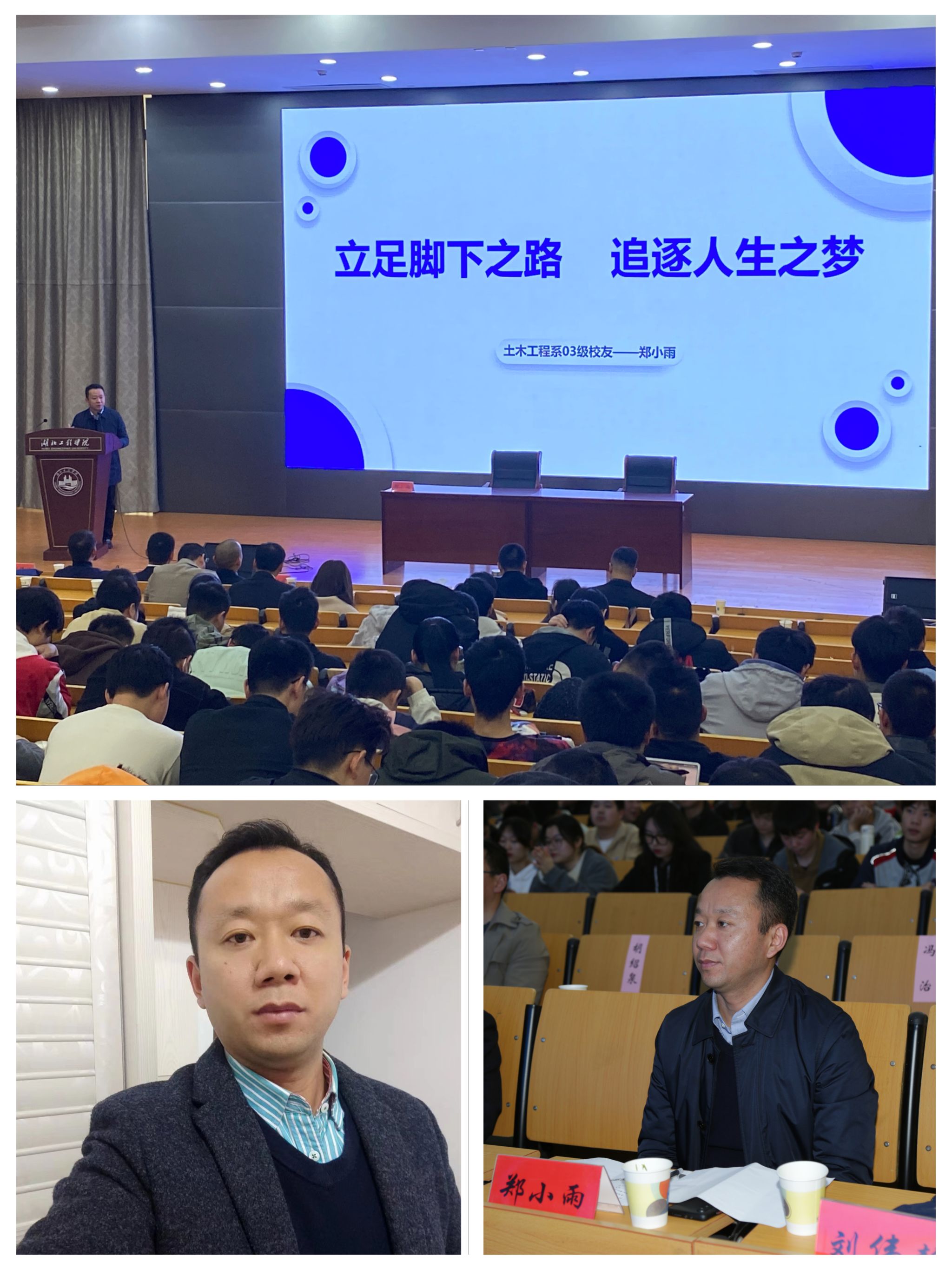 郭唐贞、刘永波、郑小雨三位校友分别做了一场精彩生动的励志报告,他们深情回顾了自己大学生活的点滴,重点围绕个人的职业生涯以及就业、择业、创业等方面,对在校学生提出了几点建议。他们希望同学们学会感恩,珍惜大学美好时光,认真学好基础知识和专业知识,养成良好的学习习惯,提高个人的综合素养和能力,做到德智体美劳全面发展,更好地适应社会发展需求。
