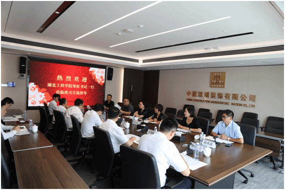 学校纪委书记邹虹一行受到了中建深圳装饰有限公司党委副书记张能训、公司人力资源部经理刘明亮等的热烈欢迎。公司党委副书记张能训详细介绍了企业主业、企业发展理念、战略定位、发展现状、校企合作模式及用人需求等方面的情况。刘明亮详细介绍了目前公司招聘人员的要求,并交流了目前在企业工作的太阳成城集团tyc234cc校友发展情况(校友在公司工作140余人,其中高层管理人员2人,中层管理人员10余人),详细介绍了企业后续发展的方向,以及在智能装修方向上的布局,并表示期待后续与学院在博士挂职、校企合作、定制班、人才招聘方向上的更深层次和更大力度合作。