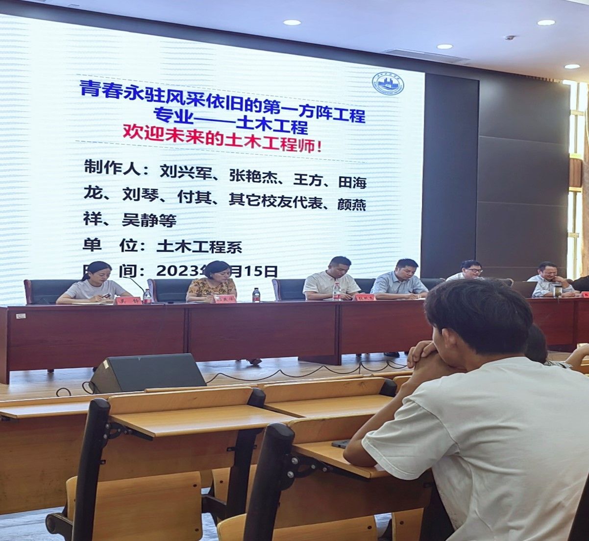 本次会议由土木工程系支部书记吴静老师主持,外聘教师中科路桥设计院副院长刘兴军、湖北亿岩工程勘测有限公司董事长张艳杰、颜燕祥老师主讲,土木工程专业新生全体班主任、教师代表及土木工程专业全体新生参加。